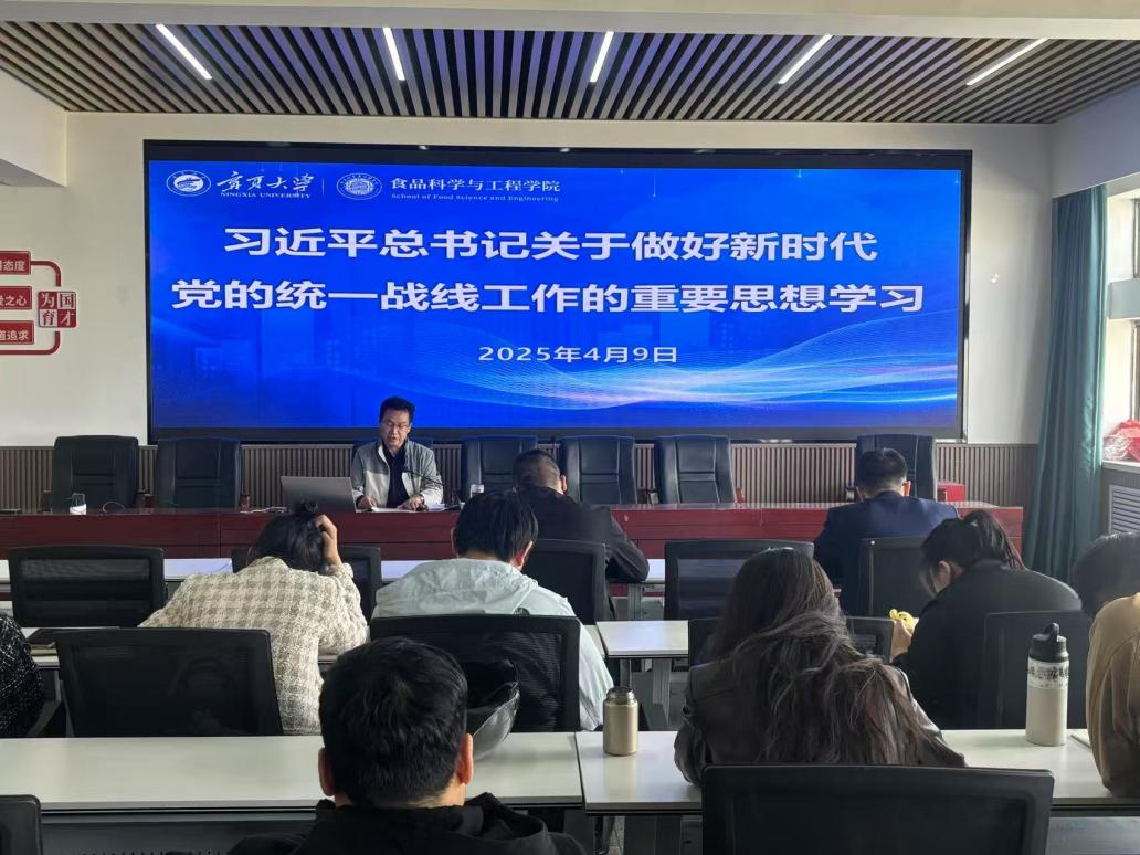 全体党员教师学习了习近平总书记关于做好新时代党的统一战线工作的重要思想。他强调,作为高校教师,要主动加强思想政治引领,积极营造团结和谐、积极向上的校园文化氛围;在人才培养中,要注重培育学生的家国情怀和社会责任感,推进多元融合,构建有温度、有力量的教育体系。同时,他鼓励教师发挥专业优势,通过建立学生帮扶制度等具体举措,服务学生成长成才。