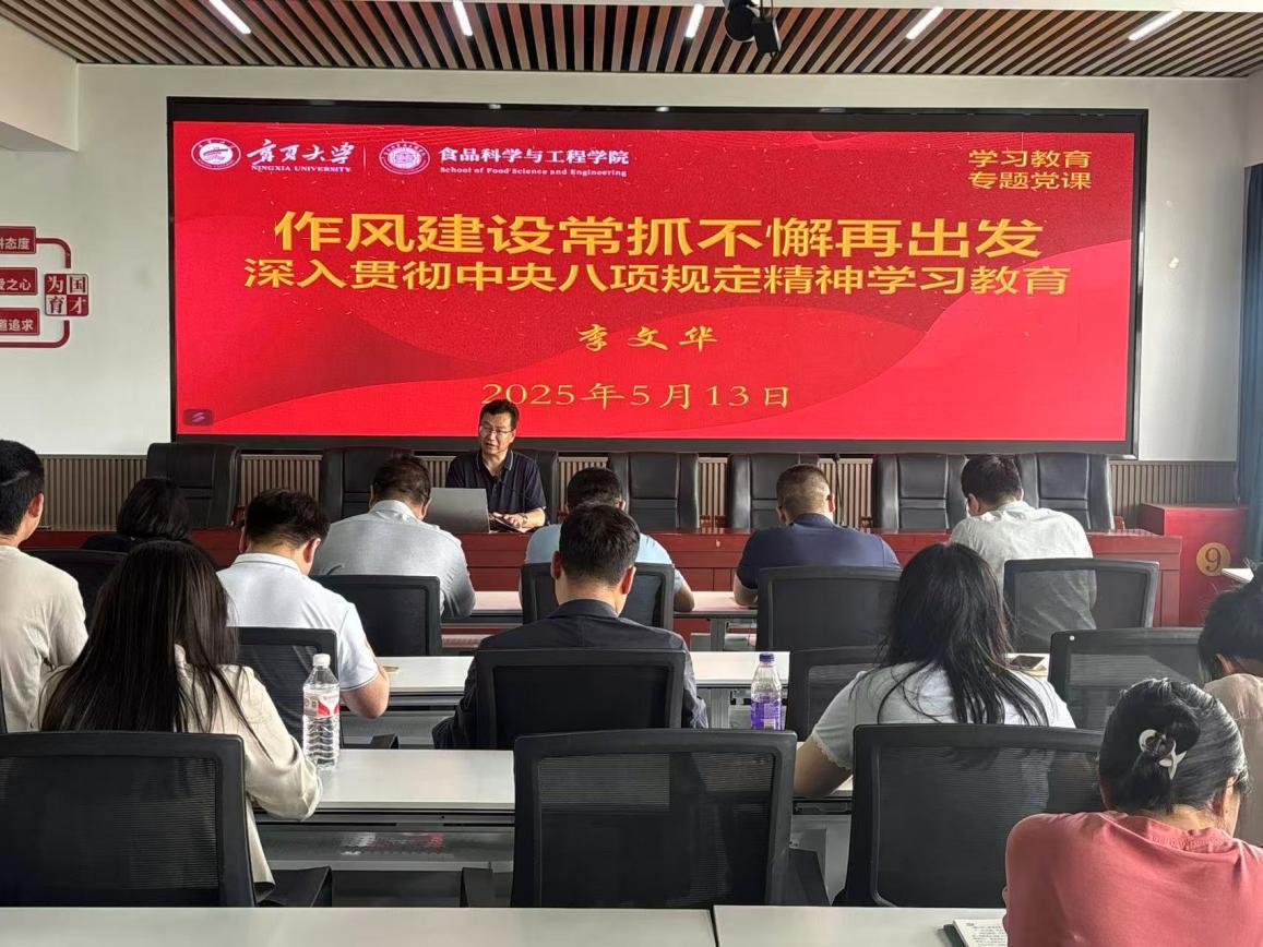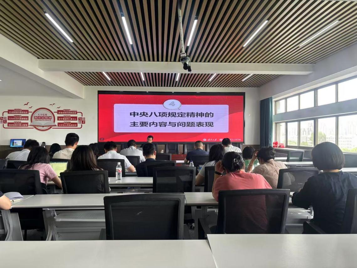 为扎实推进深入贯彻中央八项规定精神学习教育,认真落实习近平总书记关于加强党的作风建设的重要论述,三公扑克 党总支于5月21日下午在明远楼512会议室组织开展学习教育专题党课讲座。讲座以“作风建设常抓不懈再出发——深入贯彻中央八项规定精神”为主题,由三公扑克 党总支书记李文华主讲,全体党员教师参加学习。