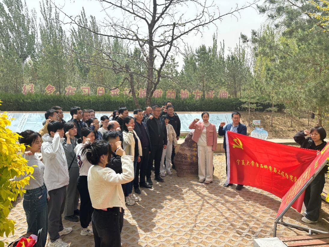 随后的微党课《一棵树的情怀》,以习近平总书记2008年在宸喜园亲手种下的枣树为切入点,讲述了这棵树背后沙漠变绿洲的动人故事。在宸喜园,教职工们怀着崇敬的心情,驻足在这棵意义非凡的枣树前,感受着它所见证的生态变迁。全体党员教师还在现场庄严肃穆地重温入党誓词,激昂的誓言在空气中回荡;还有不少教职工一起唱响红歌,用歌声表达对党和祖国的热爱之情。
