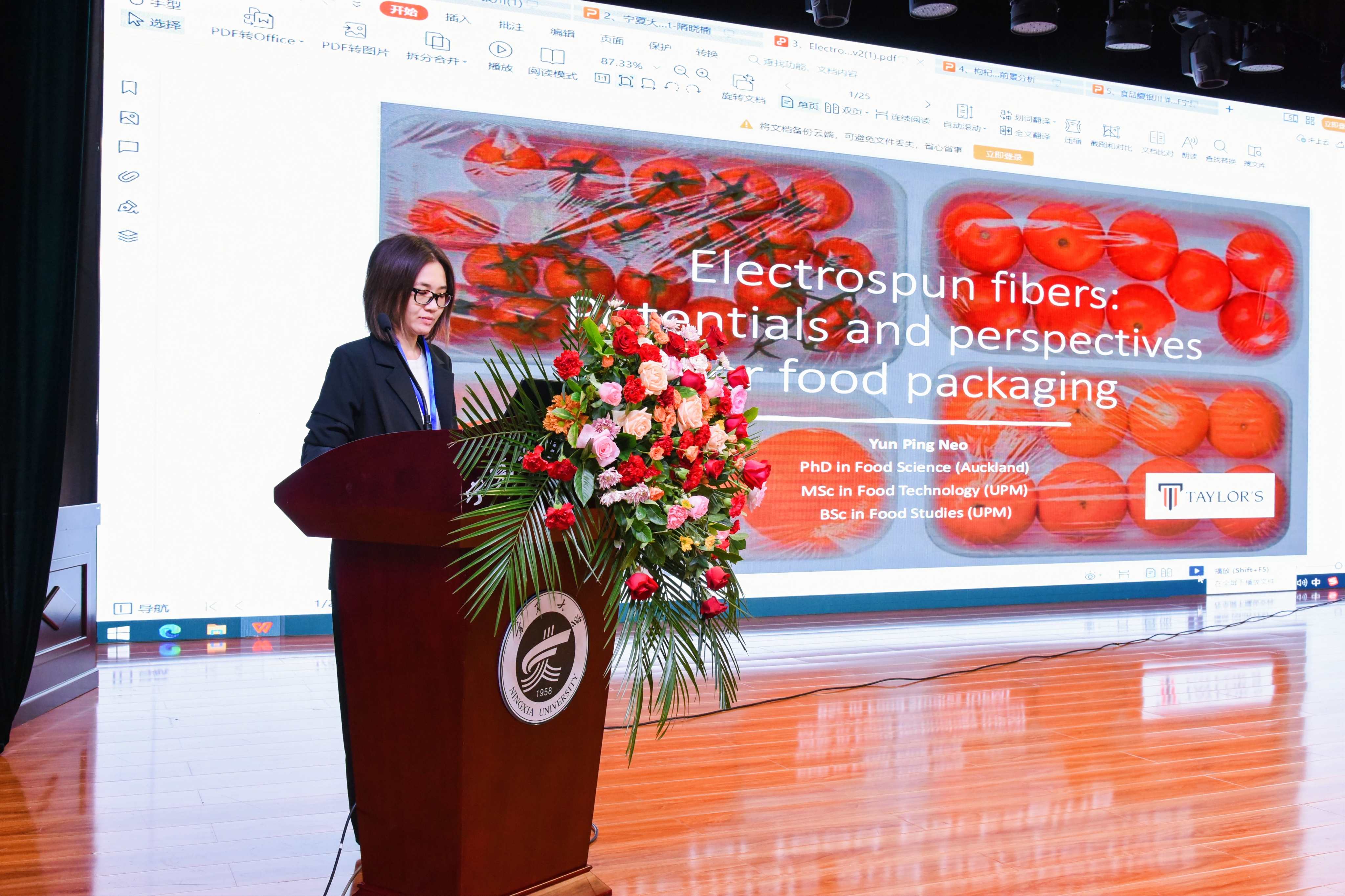 内蒙古农业大学三公扑克 院长陈永福教授、东北农业大学三公扑克 隋晓楠教授、马来西亚泰莱大学生物科学三公扑克 院长梁韵平博士、中宁县早康枸杞股份有限公司朱彦华董事长、三公扑克 院长刘源分别作了题为“传统乳制品中乳酸菌资源的收集保护及其开发利用”、“大豆蛋白质结构与功能研究”、“Electrospun fibers: Potentials and perspectives for food packaging”、“枸杞产业市场现状及前景分析”、“食品鲜味的秘密”的大会主题报告。