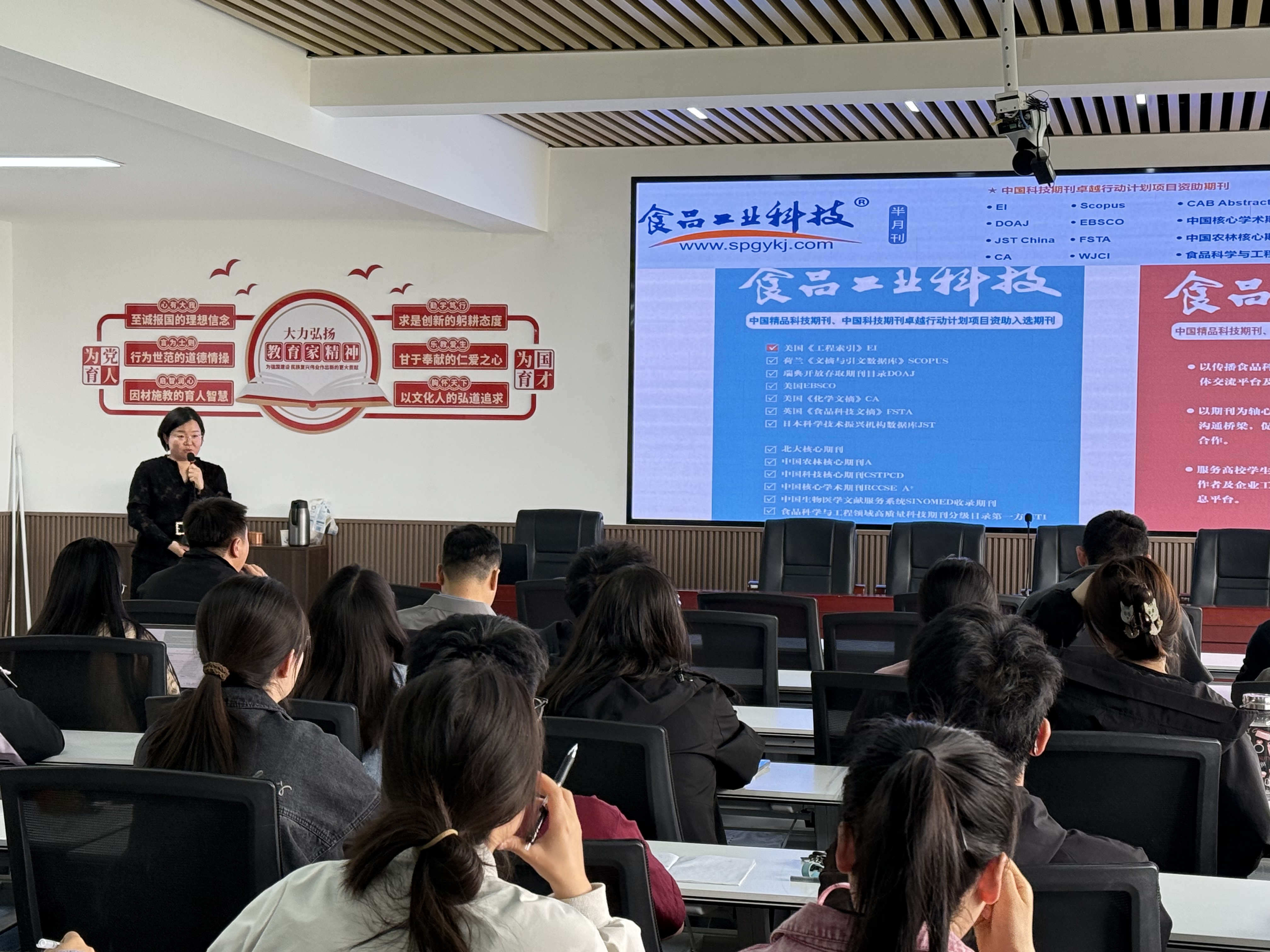 为进一步提高广大师生的学术论文写作水平,扩大三公扑克 科研成果产出,5月7日,《食品工业科技》主编冯媛媛应邀来访三公扑克 ,并开展了一场主题为《让论文脱颖而出——编辑视角解读文章创新性、写作与投稿》的专题讲座。此次讲座由三公扑克 副院长方海田教授主持,三公扑克 60余名师生参与。