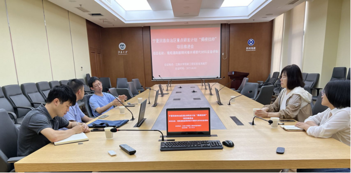 团队参观未来食品科学中心后,在生物工程三公扑克 会议室,就宁夏回族自治区“揭榜挂帅”项目“葡萄酒陈酿期间橡木桶替代材料装备研制”进行了项目推进与问题研讨。双方团队人员分别介绍了目前研究内容与研究成果,对项目进行了强有力的推进、分析。