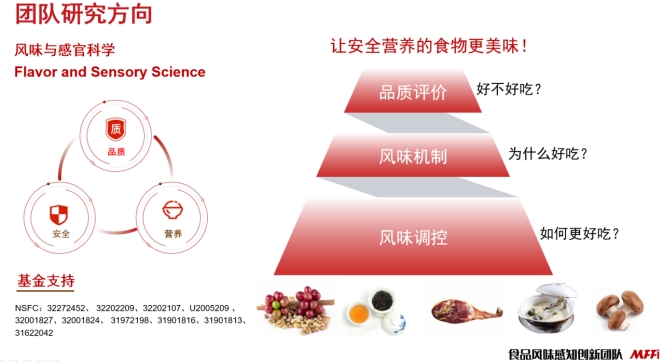 食品风味感知创新团队(Food Flavor Perception Innovation, MFFi)成立于2012年,团队秉承“以人为本,团结协作,开拓创新,追求卓越!”的宗旨,致力于高水平人才培养和人类美味生活!