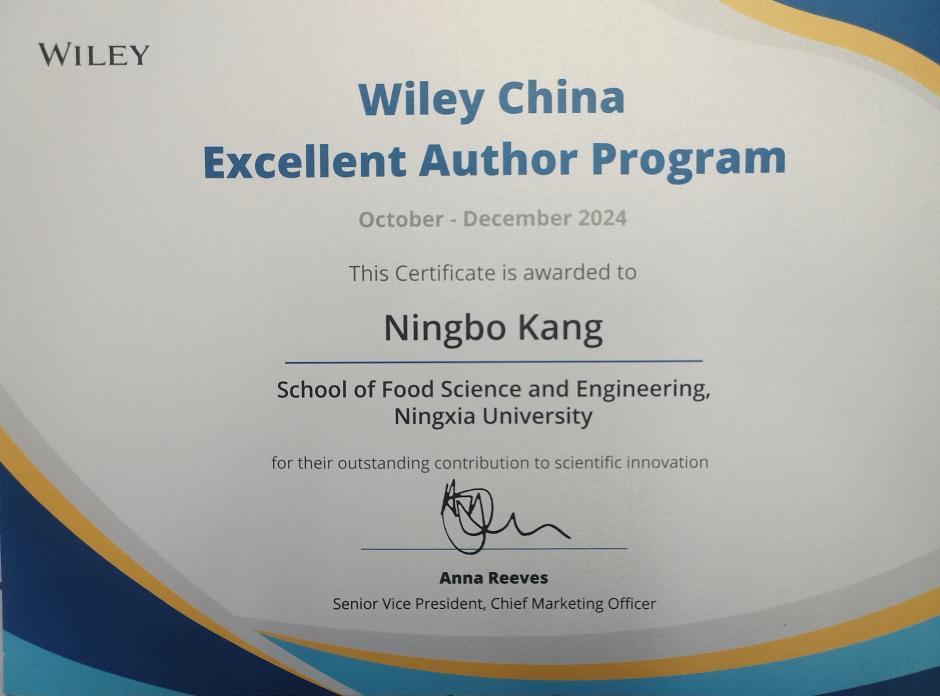 康宁波老师课题组在《Journal of Food Process Engineering》发表题为《Advances in Multi-Scale Biomechanics of Fruits and Vegetables: A Review》的论文,受到了全球学者的广泛关注。该论文在 2024 年第四季度发表文章下载量中位居前列,荣获 “Wiley 威立中国高贡献作者奖”。“Wiley威立中国高贡献作者奖”是由国际著名学术出版集团Wiley设立的奖项,旨在表彰中国学者在其旗下期刊发表的高影响力研究成果。