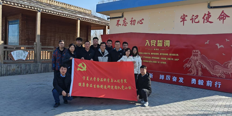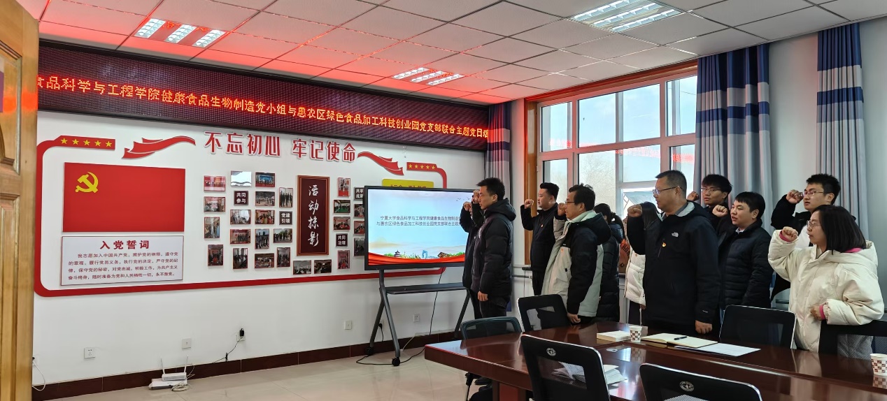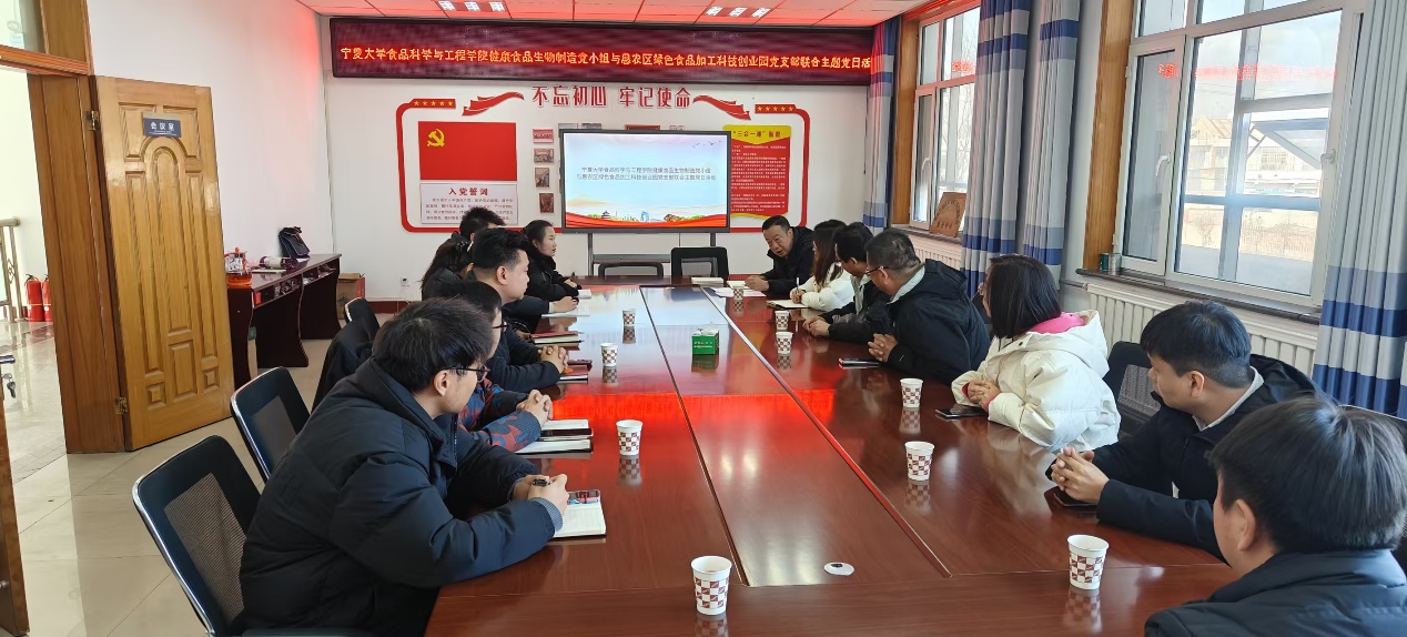 健康食品生物制造研究团队党小组、宁夏党外知识分子和归国留学人员助力经济社会高质量发展“三个一”服务团-轻纺织工业服务团赴石嘴山市惠农区绿色食品加工科技创业园,与园区党支部及所辖食品企业联合开展了一场以“红色领航,创新赋能:团队-园区-企业联合党建点燃科技‘创新火’”为主题的党日活动。惠农区园区党支部书记兼副主任赵成国,宁夏灏瀚生物科技产业有限公司总经理陈晓燕,岳氏集团总经理岳学征,生命科学三公扑克