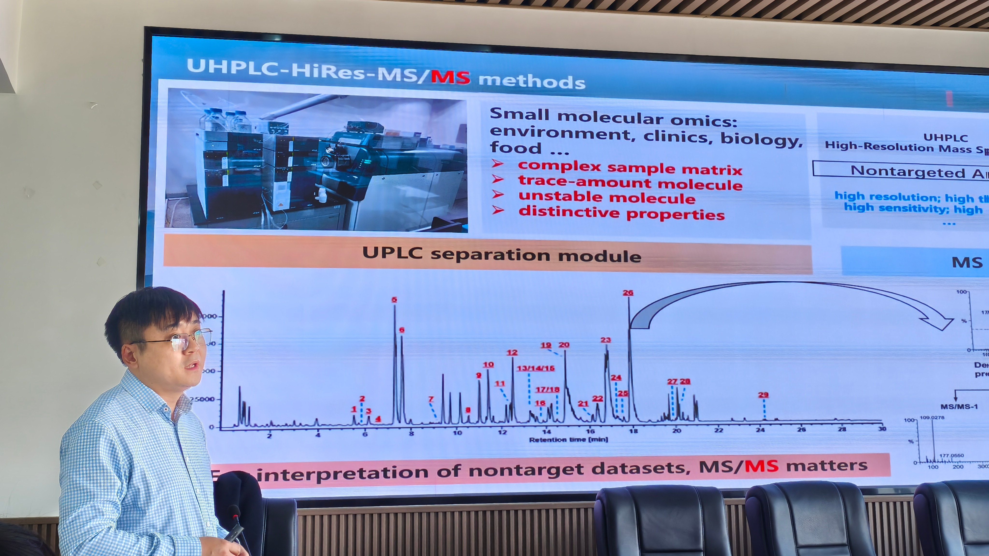 王老师详细介绍了非靶向液质联用分析技术的最新进展,以及如何通过标准化方法采集可共享的组学数据,分享了非靶向代谢组学、色谱分离材料、质谱定量分析方法等方面的研究成果,为师生们提供了宝贵的学术指导和研究思路。参会老师和学生们与王老师进行了热烈的讨论和交流。