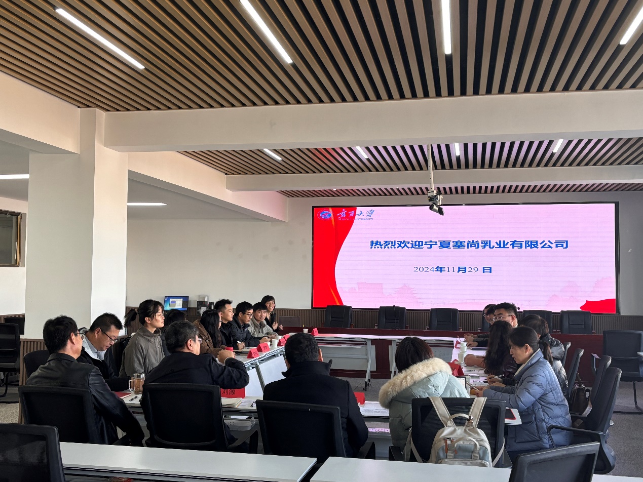 塞尚乳业公司董事长闫建国及其总工办总监孙艳芳等介绍了企业情况及合作意向。作为国内乳品精深加工领域的领军企业,塞尚乳业对此次合作充满期待,希望通过校企合作解决企业生产及产品研发中的难题,推动行业技术创新。