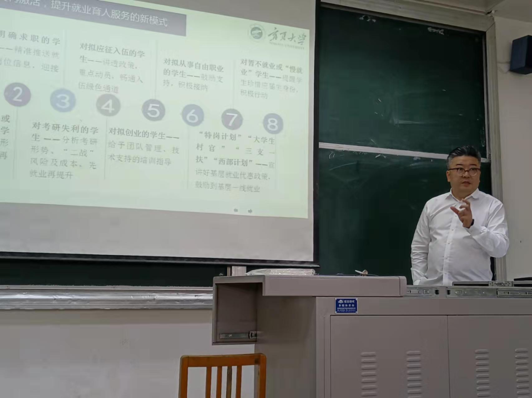 党委副书记马浩谦主持,研究生辅导员侯艳茹、本科生辅导员王佳梅和全体2022届未就业毕业生参与了此次讲座。