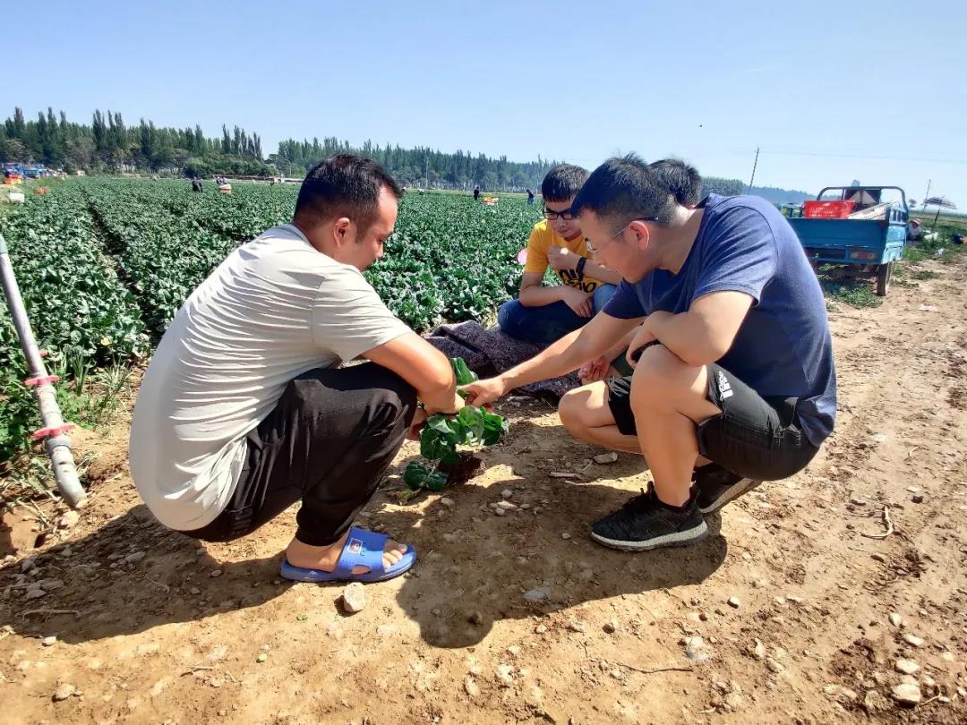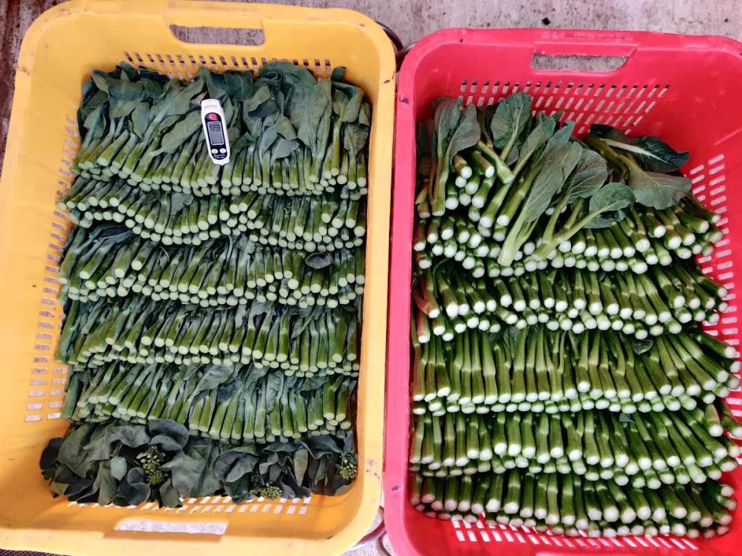 宁夏鑫茂祥冷藏运输有限公司唐佳丽副总及魏小德总管陪同团队,在宁夏鑫茂原菜场参观了菜心、芥蓝的种植及采收现场。魏总讲到,今年在青铜峡菜心、芥蓝种植面积达到1900亩,在河南许昌种植面积达2000余亩,产品供不应求。针对蔬菜采收后预冷存在的问题,本项目研发的真空预冷装备比传统冷库预冷在冷却时间、冷却效率方面有显著的成效,极大的保持了蔬菜的新鲜度,延长了货架期。接着,团队成员就优质蔬菜(菜心、芥蓝)产地移动式真空预冷设备进行了示范应用,预冷时间仅18分钟,就将菜心、芥蓝的温度从27℃降到0℃,产品外观品质得到了很好的保真。