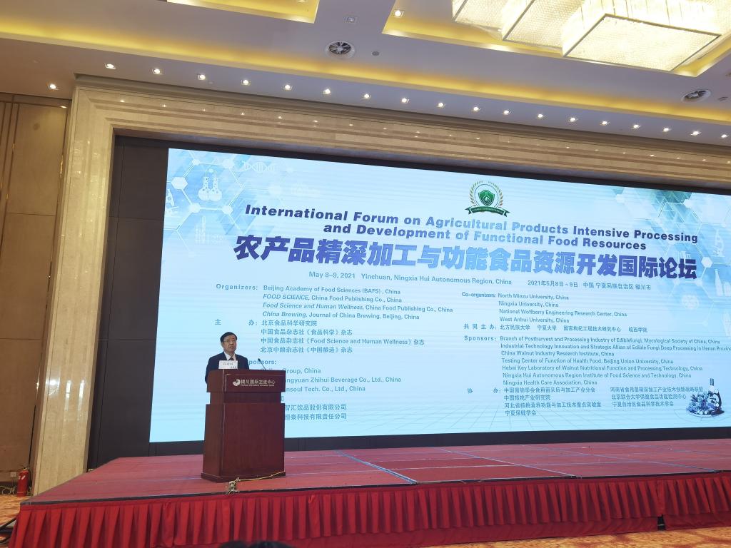共同举办,中国菌物学会食用菌采后与加工产业分会、河南省食用菌精深加工产业技术创新战略联盟、中国核桃产业研究院、北京联合大学保健食品功能检测中心、河北省核桃营养功能与加工技术重点实验室、宁夏回族自治区食品科学技术学会、宁夏保健学会支持协办。本次会议主要围绕“农产品精深加工、功能食品资源开发”等方面的重大理论研究和技术开发展开深入探讨,共有来自国内外的180余位专家做了精彩学术报告。