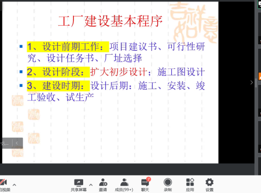 张海红教授对专业工程认证过程中工厂化设计的要求进行详细地讲解,内容涉及课程性质、任务、工厂设计的基本程序以及工艺设计等。