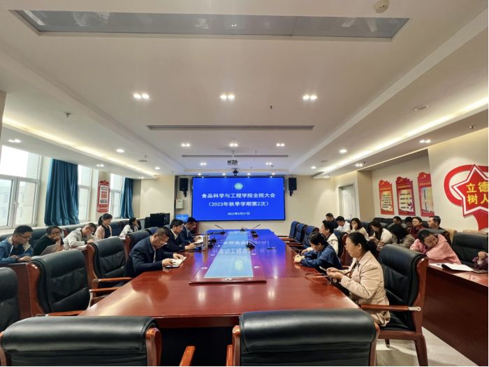 王松磊副院长就新进教师教学工作培训、教学制度制定、教研活动、本科生导师制及食品科技创新大赛等工作安排进行汇报。