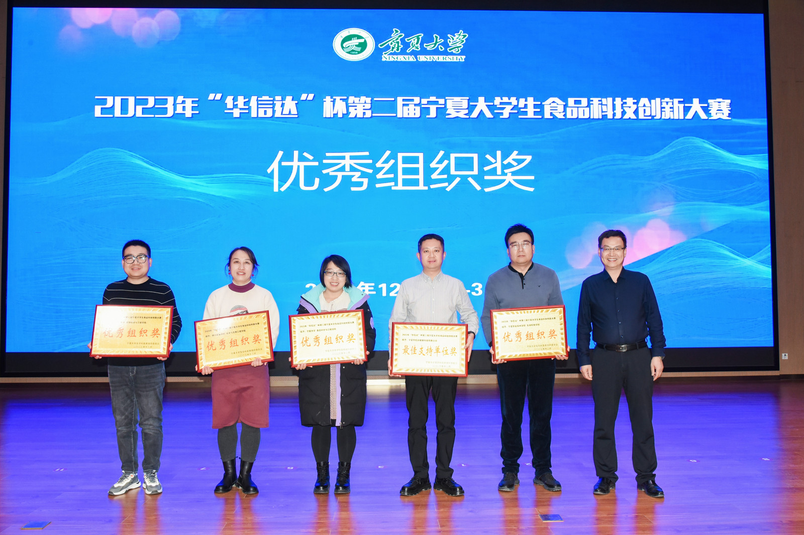 4家单位获得优秀组织奖,宁夏华信达健康科技有限公司获最佳支持单位奖,成绩的获得既是广大师生辛勤付出、勇于创新的结果,更是专家学者对同学们学习成果、学以致用能力培养的认可。