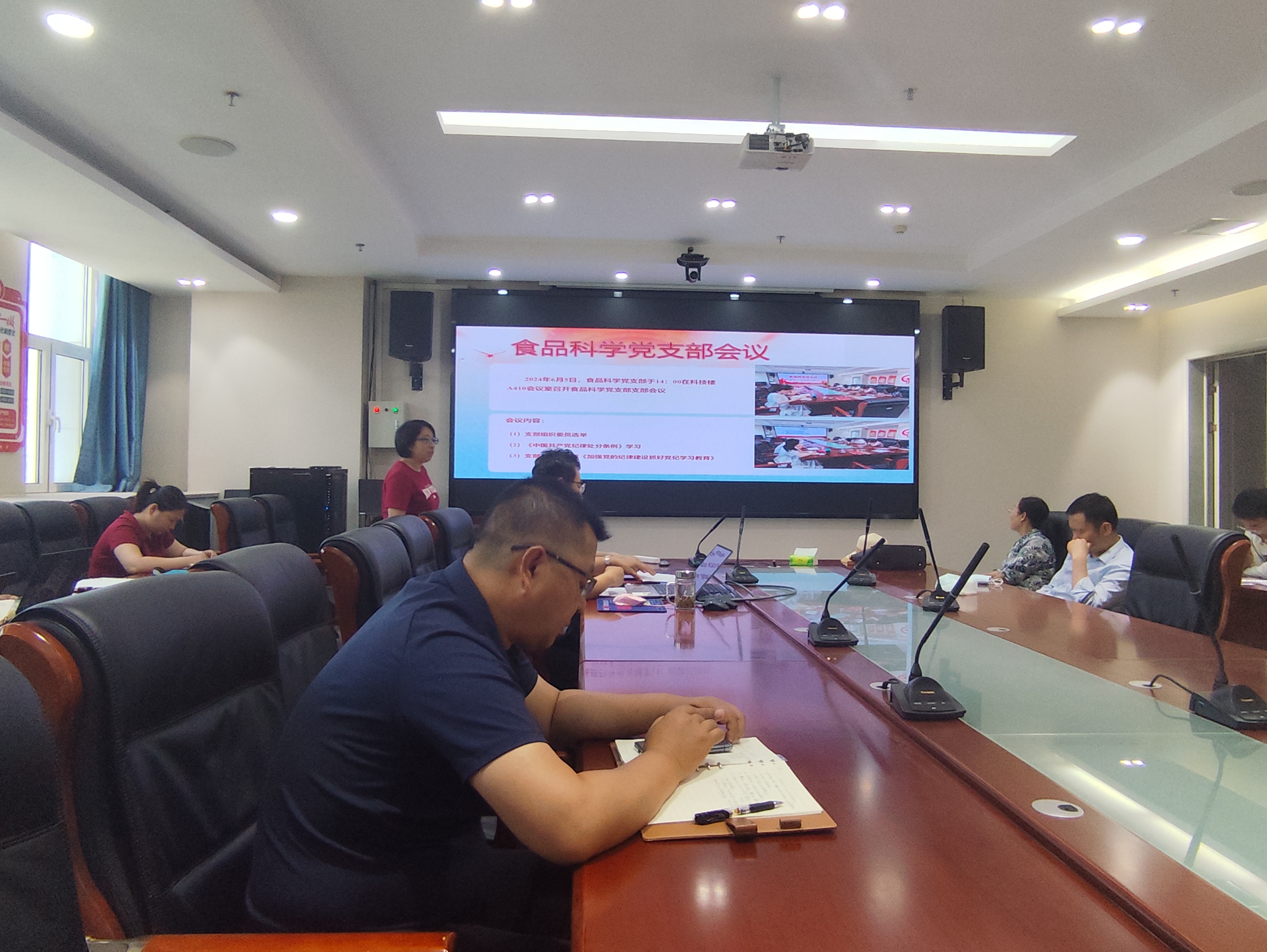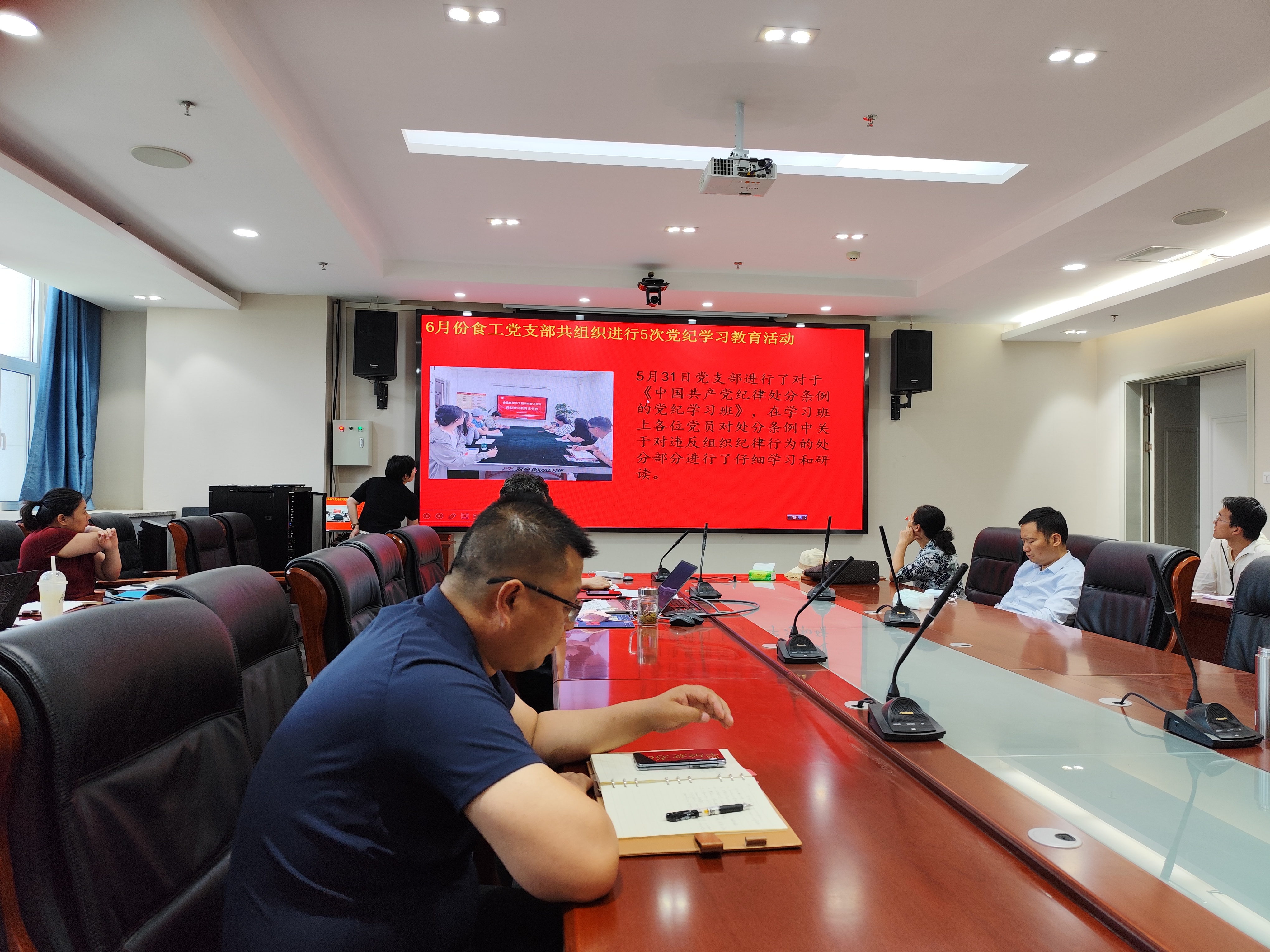 党支部书记潘琳和曹松敏分别对党支部近期工作进行了汇报,全面梳理和总结了2个基层党支部党纪学习教育和“三会一课”、主题党日活动的开展情况。
