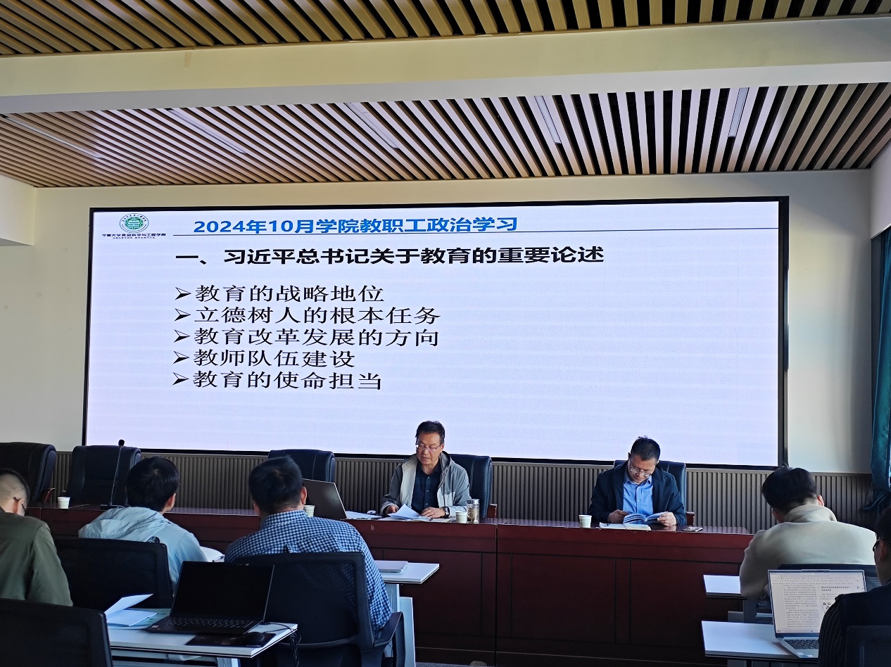 重点工作进展及计划,并带领大家进行了政治学习。全院教师一起系统学习了习近平总书记关于教育的重要论述、2024年全国教育大会精神、《关于弘扬教育家精神加强新时代高素质专业化教师队伍建设的意见》,以及习近平总书记《论教育》等,进一步加强了老师们的政治素养和教育理念。