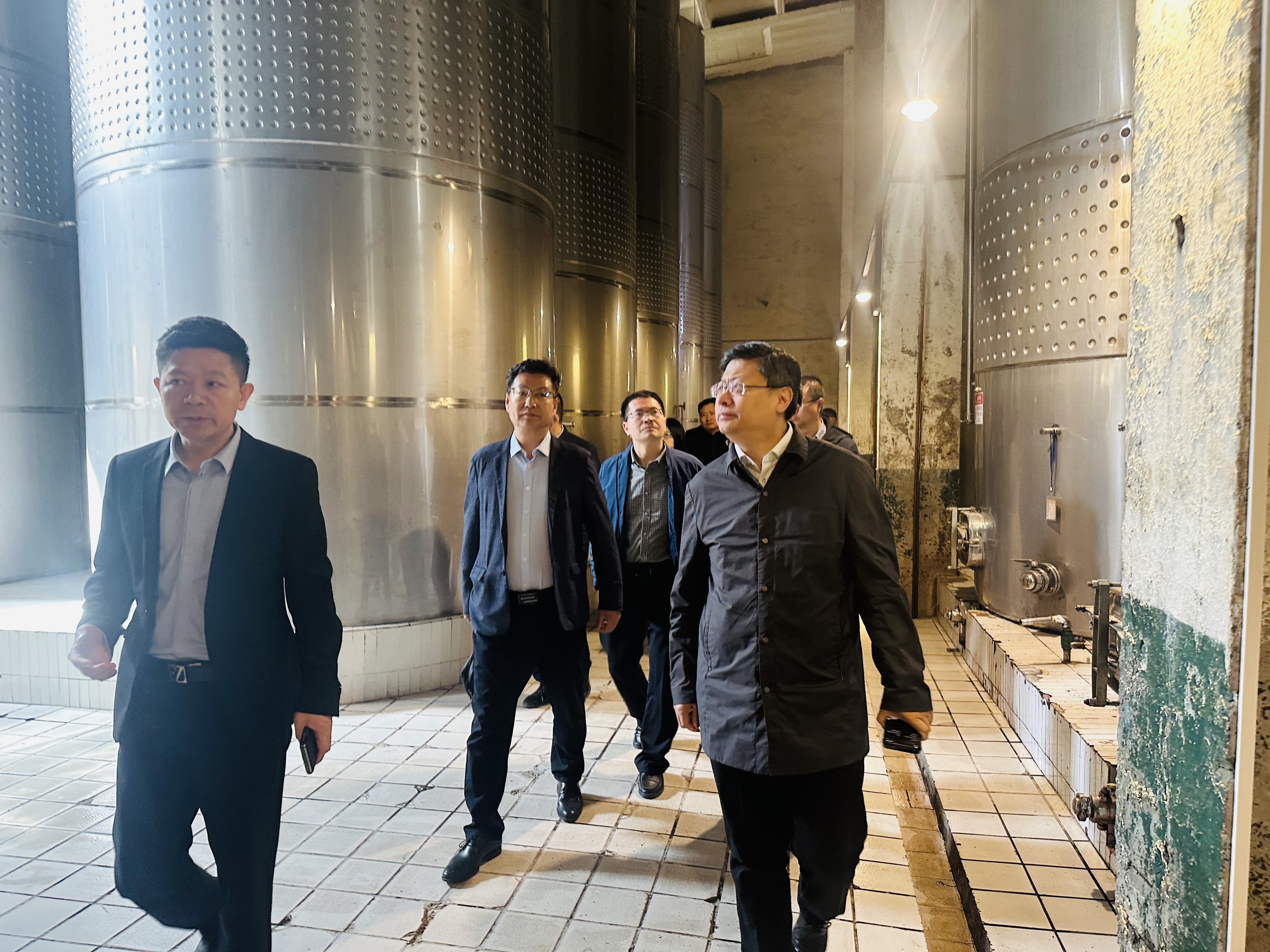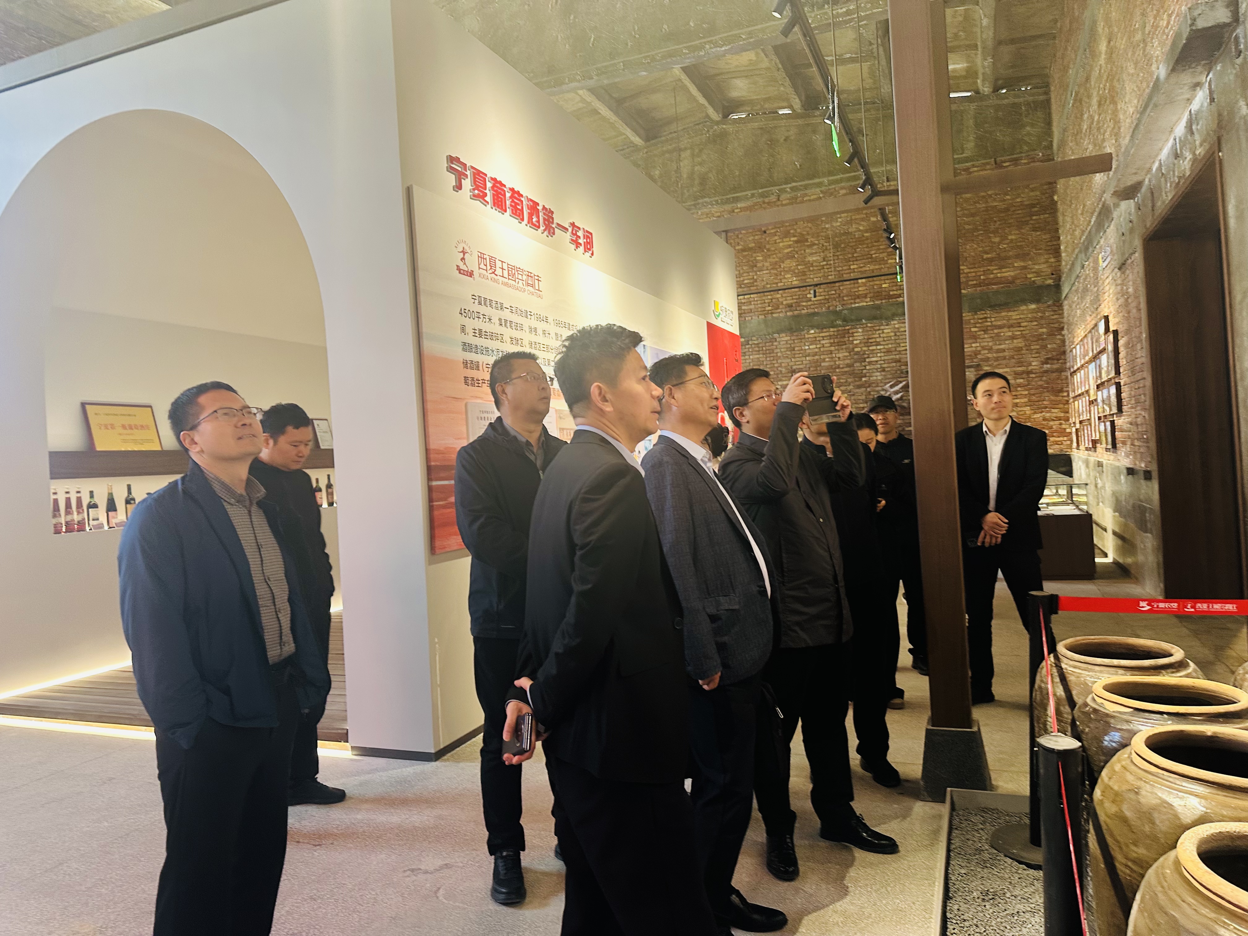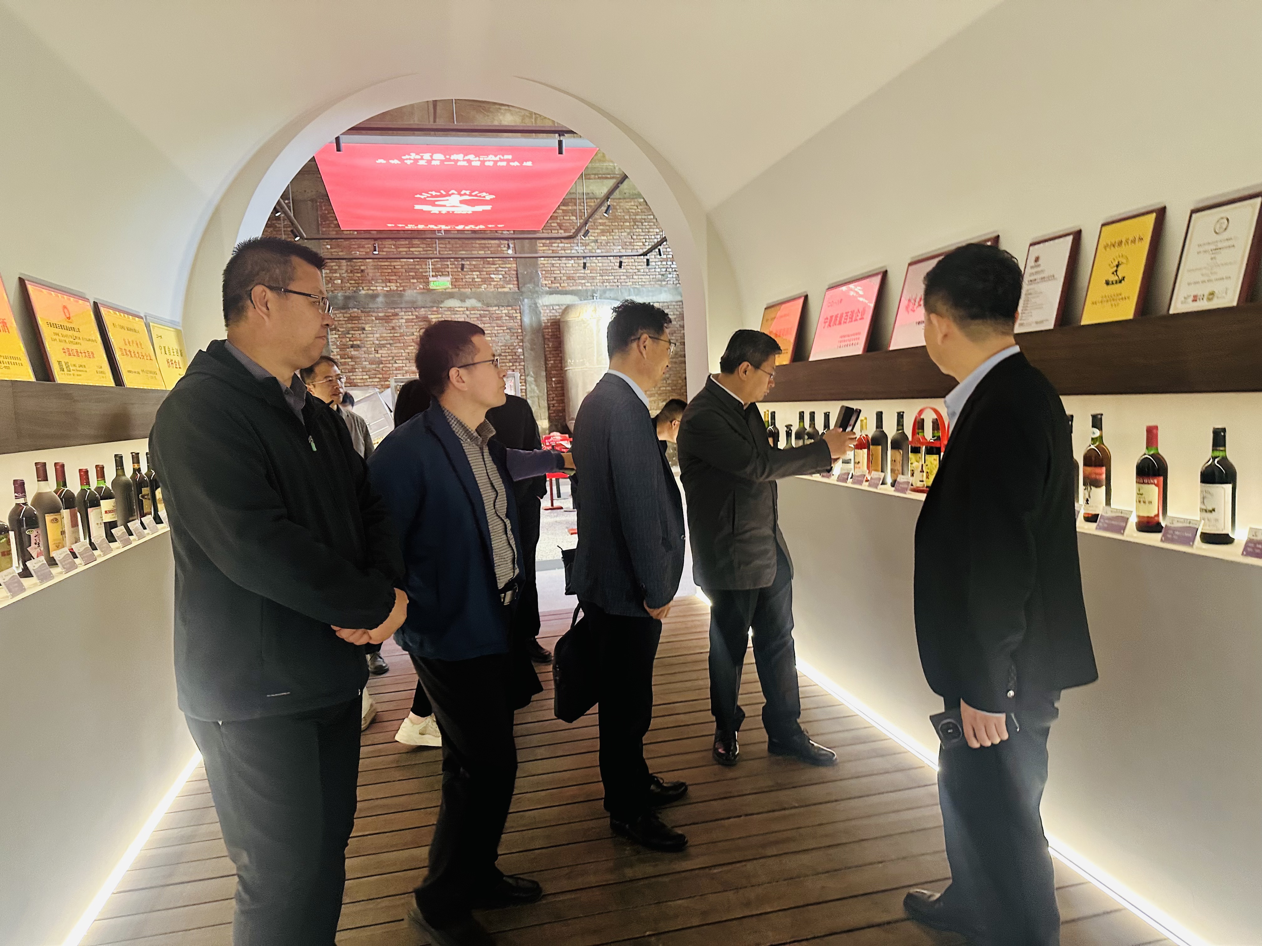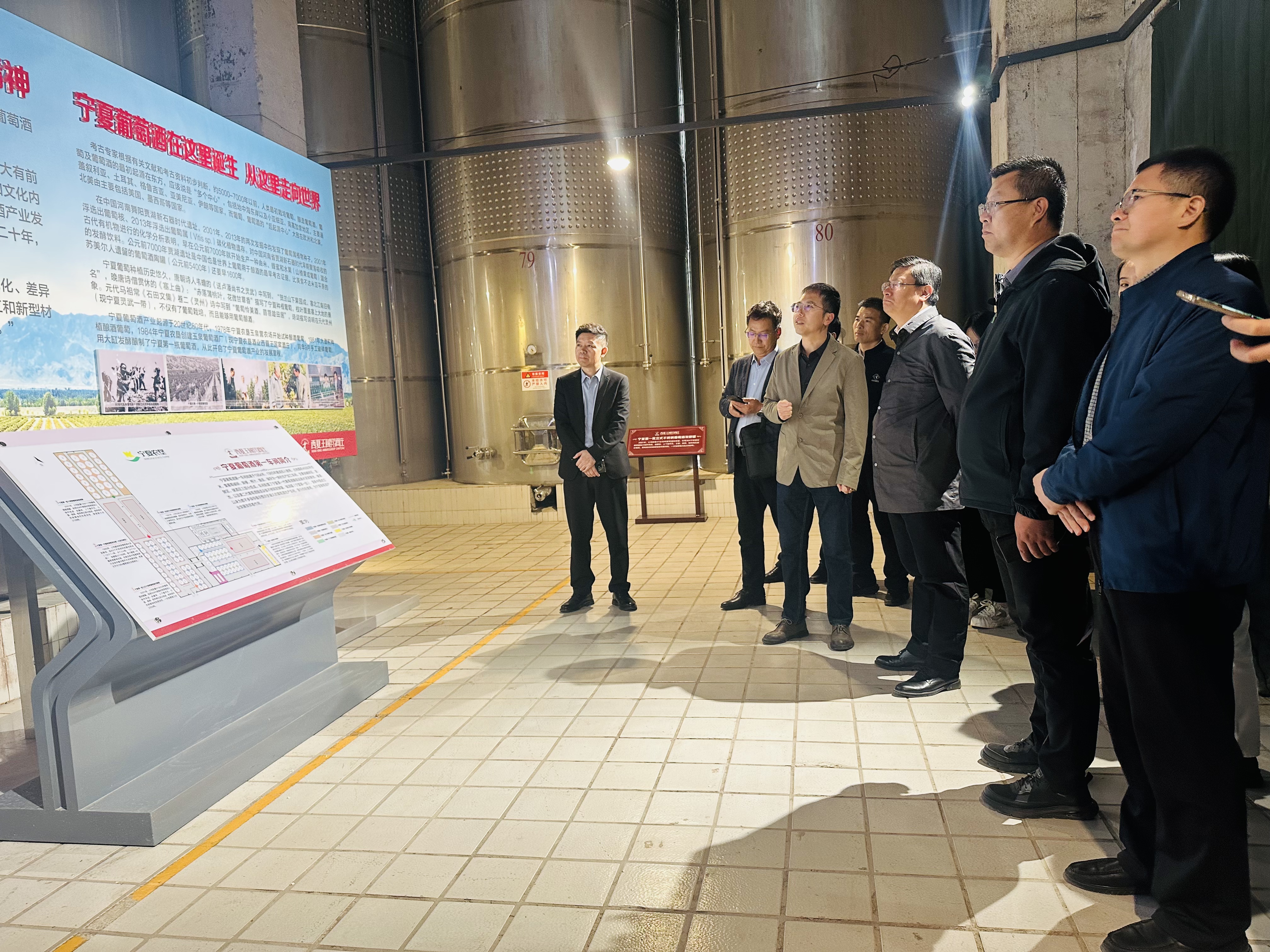 一行人对文化展厅、研发中心、灌装生产线、酒庄酒库、酿造车间等进行深入考察,并详细介绍了贺兰山东麓葡萄酒产业发展现状、红酒酿造工艺流程与关键技术、新产品创新开发、企业多元化科技发展战略及皮渣综合利用技术等。