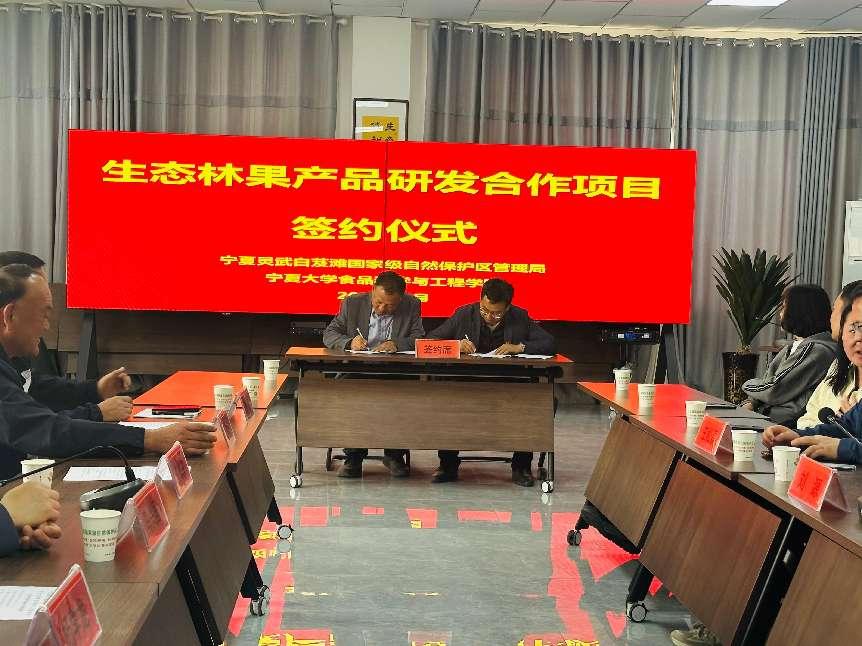 方海田副院长、李亚蕾教授、章中教授、范艳丽教授分别从微生物发酵、食品加工技术、无损检测、营养成分提取等角度,提出将沙区资源转化为高附加值产品的具体思路。双方还围绕沙区药食同源植物开发、生态产业链延伸等议题展开讨论,并签订《产学研战略合作框架协议》,约定在科研攻关、学生实践基地建设、成果推广等方面开展深度合作。