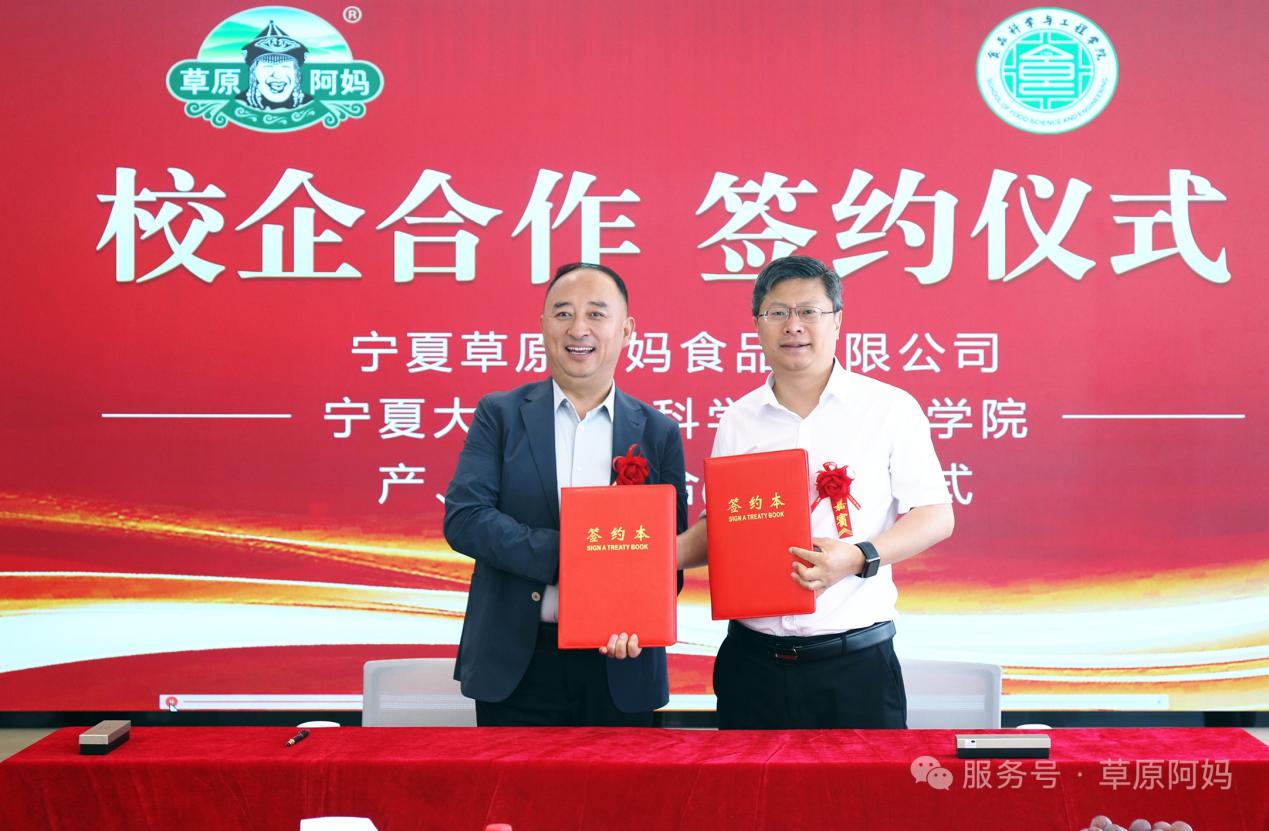 与宁夏草原阿妈食品有限公司举行“产、学、研、用”合作共建签约仪式,标志着双方在食品产业领域深度合作的正式启动。