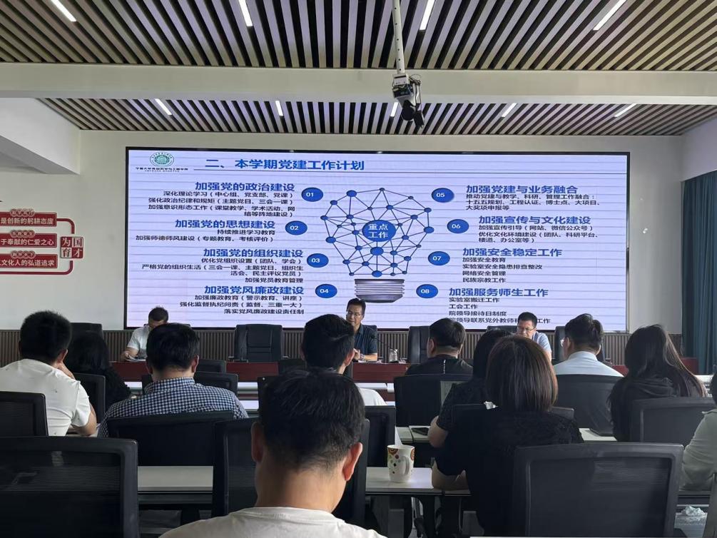 下半年党建工作进行总体部署,提出要在政治建设、思想建设、组织建设、党风廉政建设、党建与业务融合、宣传文化、安全稳定以及服务师生等八个方面持续发力。同时,他对近期重点工作作出安排,强调要扎实做好“十四五”总结与“十五五”规划编制、实验室维修改造与搬迁、学会党支部组建与党小组优化调整以及三公扑克