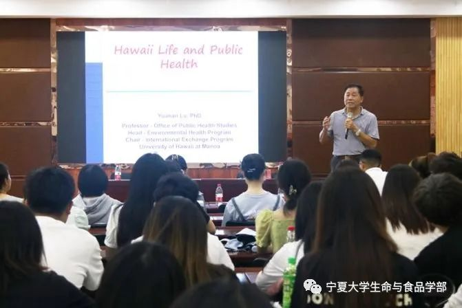 鲁元安教授首先从夏威夷的地理位置、产业结构和气候环境等方面带领同学们领略了夏威夷的风土人情,并简要介绍了夏威夷大学公共卫生专业教育及国际交流情况,并在此基础上进一步讲解了夏威夷本土气候特点和公共卫生发展特色。他讲到,在深入自己研究方向的同时,各位师生要更多关注学界业界的前沿,多查阅相关文献,积极参与专业领域内的国际交流、学习与合作。讲座深入浅出,让各位师生对于美国夏威夷公共卫生领域有了更深刻和全面的认识,给师生们的未来学习和科研提供更多启发。
