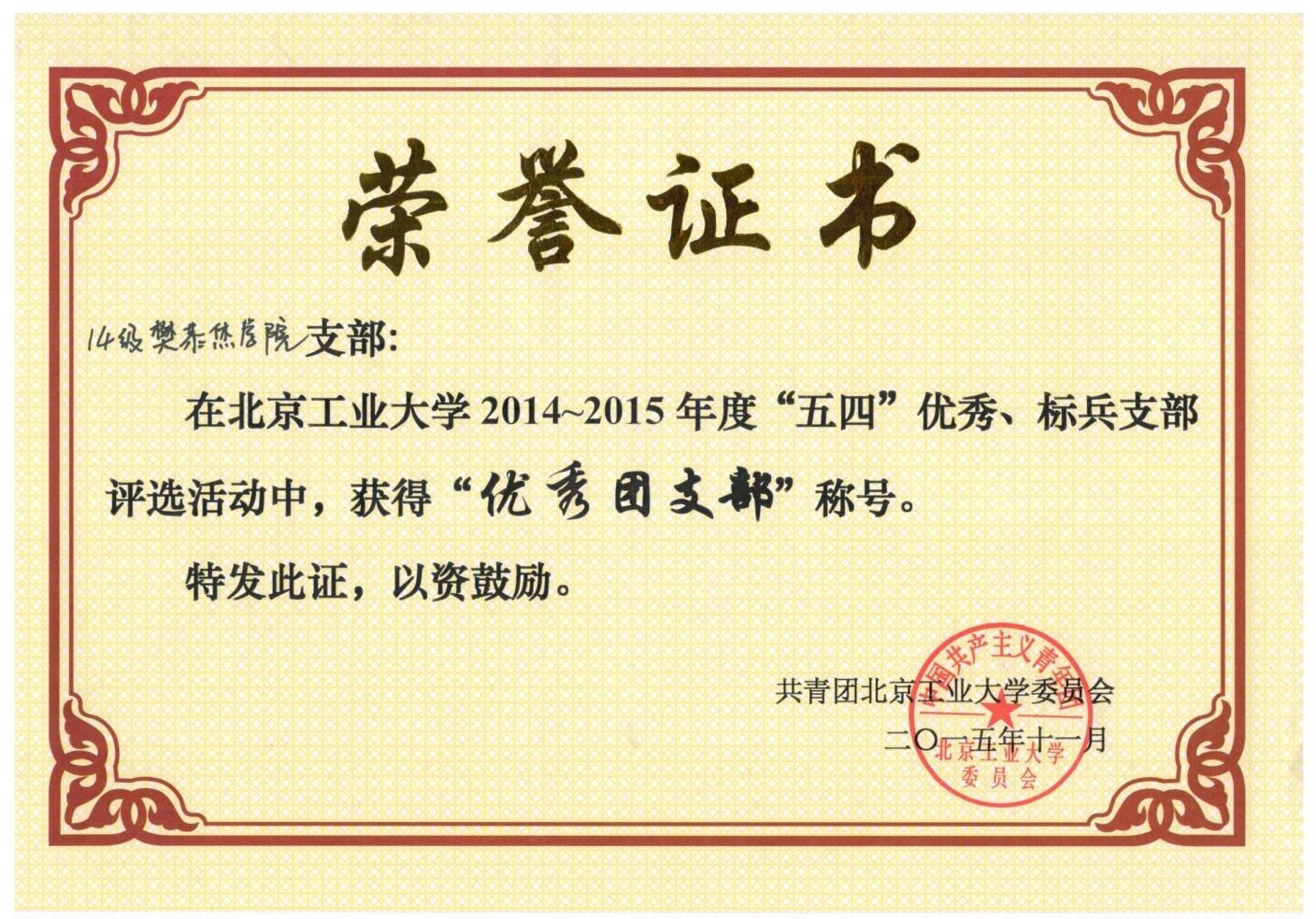 14级樊恭烋三公扑克 荣获 五四优秀、标兵支部 优秀团支部