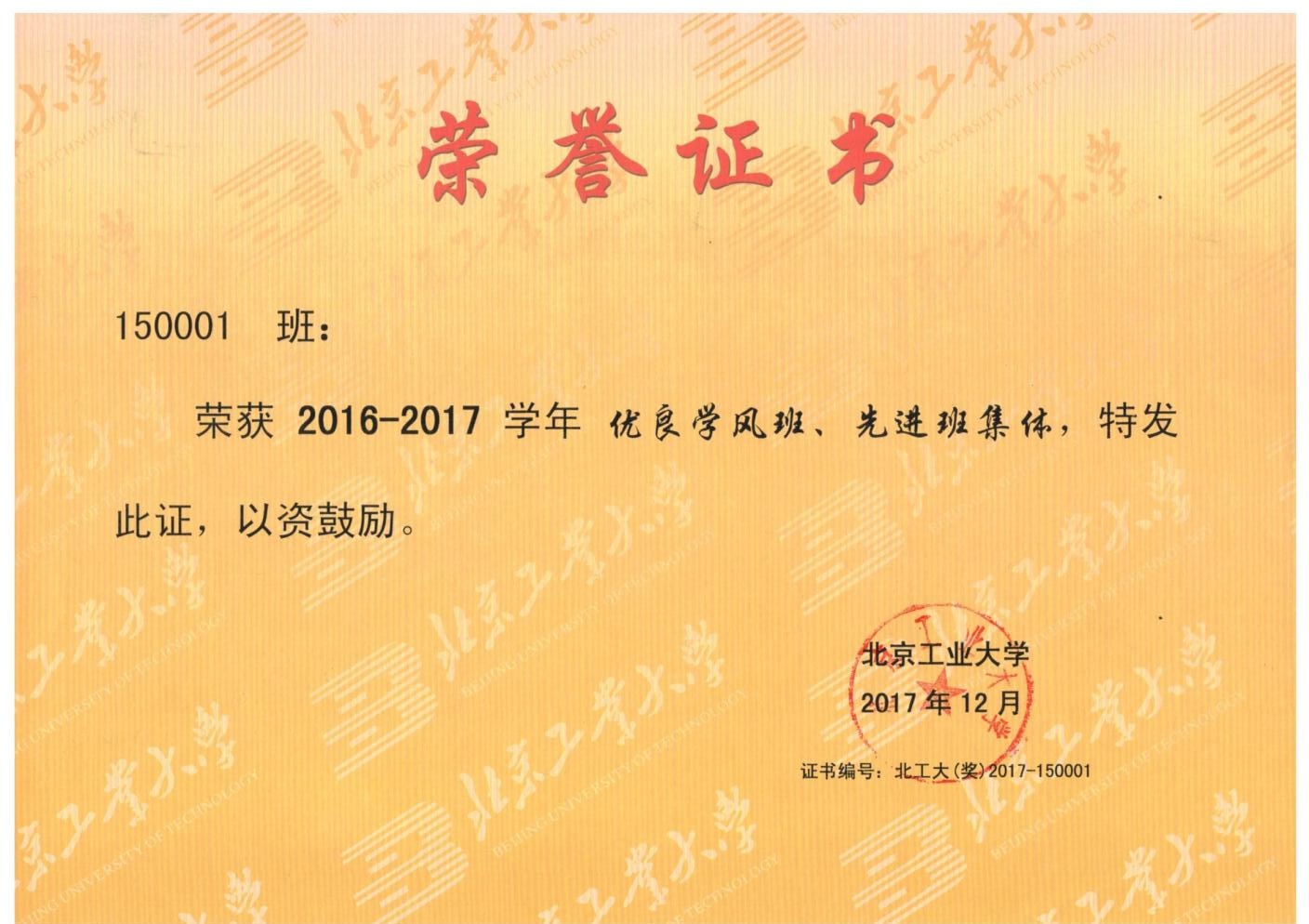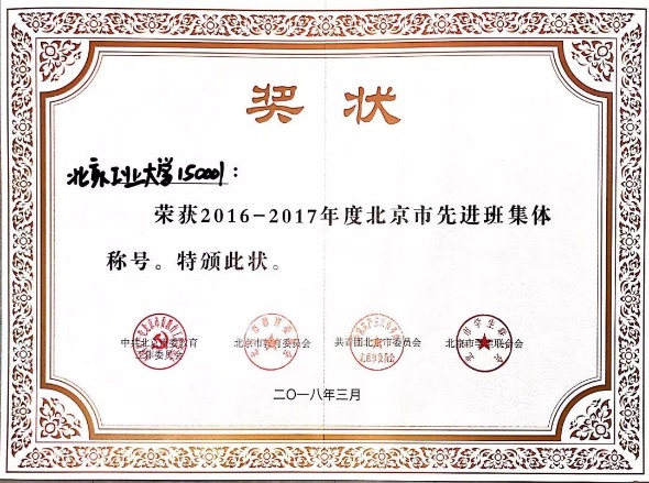 150001班 荣获 北京市先进班集体