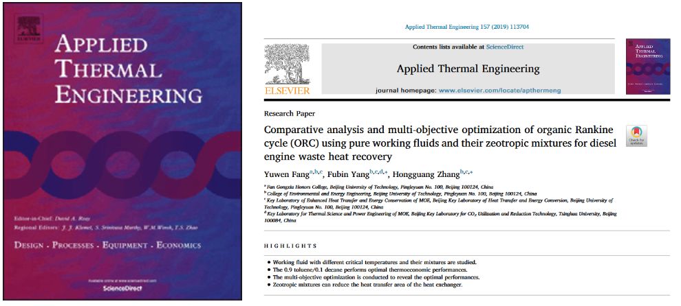 汽车工程系张红光教授所在的科研团队。在团队的大力支持下、在师兄杨富斌博士的热情帮助以及导师张红光教授的悉心指导下,方钰文在ORC系统混合工质的热经济性方面开展了深入研究,取得了创新性的科研成果。本次关于余热利用学术论文的发表,得到了行业内评审专家的高度认可。方钰文已于2018年9月获得了在清华大学攻读博士学位的推免资格。