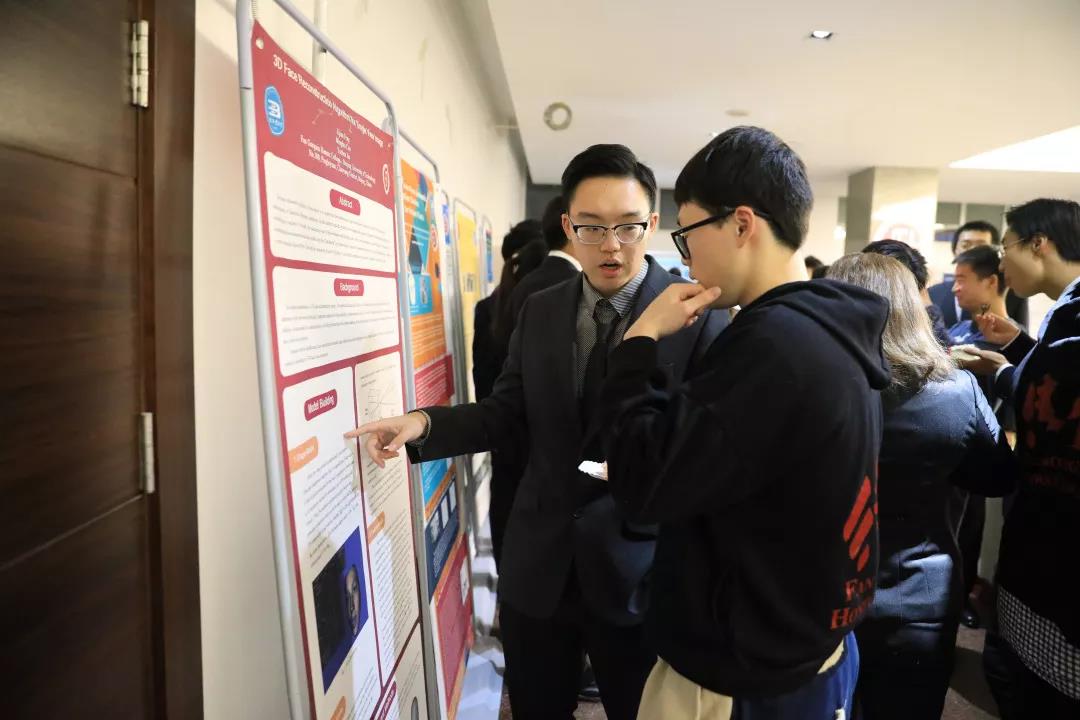 在中场休息时,评委老师们与各项目组进行了深度交流,并对各组学术专业海报进行了点评,同学们也在这一环节中与各项目组成员进行了热烈的讨论,拓展了科技视野,这将有益于跨学科思维的培养。最后,经评委老师们的讨论和评分,参加本次汇报的18个项目全部顺利结题。
