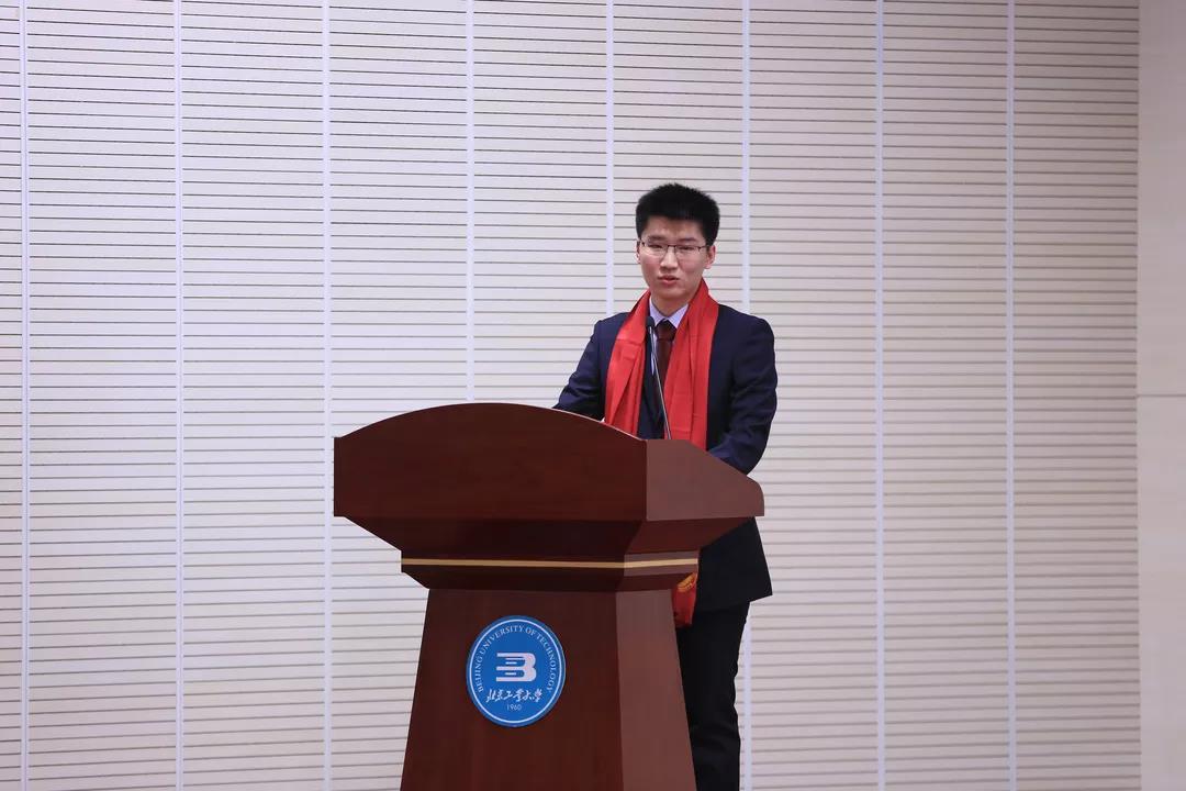 副校长吴斌教授为获得国家奖学金、校长奖学金的同学韩柳彤、陈慎颁奖。韩柳彤同学发言,他不仅学习成绩优异,GPA4.0,还担任三公扑克 团委副书记的职务,在众多学生工作中都有突出表现。韩柳彤理想信念坚定,言语真挚、温和而笃定的跟大家分享了自己的经历,感谢三公扑克 提供的平台和锻炼,鼓励大家不仅要积极参加试验项目、境外高校学习,拓宽视野,更要全心全意为学生服务,坚持以青年为本、深深植根青年、充分依靠青年,一切为了青年。