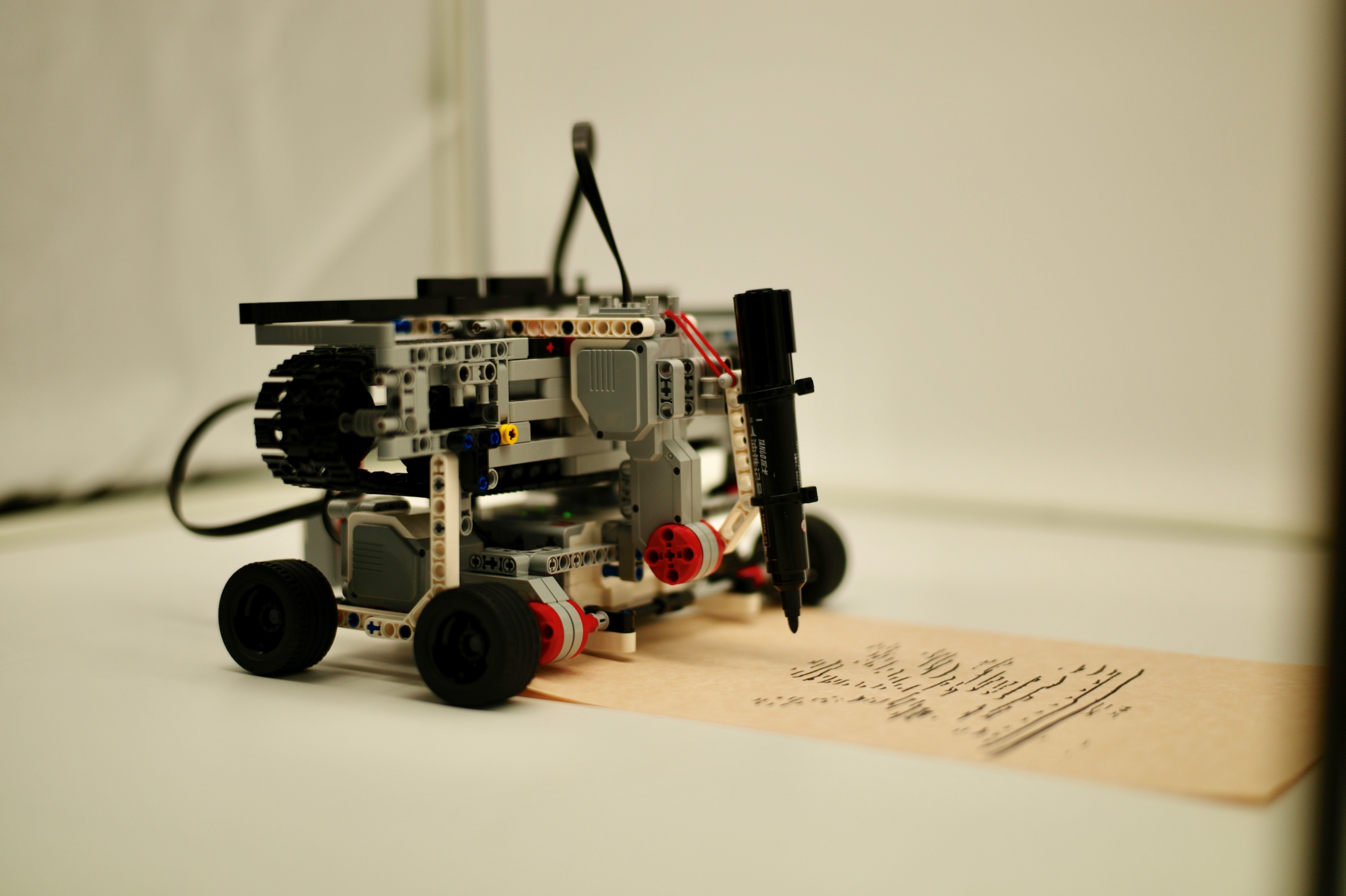 除了视频展示和问答环节,同学们还现场演示了荣誉课程研究成果——仿生六足机器人的三角步态行走和LEGO EV3智能机器人书写“我们的家”。