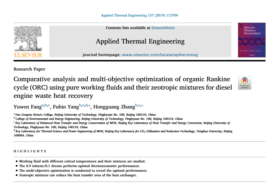 汽车工程系张红光教授所在的科研团队。在团队的大力支持下、在师兄杨富斌博士的热情帮助以及导师张红光教授的悉心指导下,方钰文在ORC系统混合工质的热经济性方面开展了深入研究,取得了创新性的科研成果。本次关于余热利用学术论文的发表,得到了行业内评审专家的高度认可。方钰文已于2018年9月获得了在清华大学攻读博士学位的推免资格。