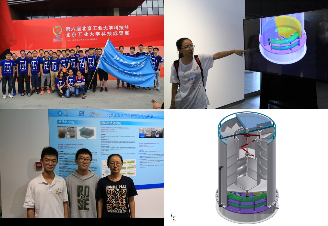 2015级学生向大家展示了《生态敏感区桥面径流收集与处理装置》项目。该项目的设计初衷在于保护环境,尽量减少人类活动对生态敏感区的影响。该装置在混凝沉淀和离子交换的工艺基础上,进行了结构创新设计和集成,并加以自动控制,使其能够适应无人值守的工作条件和复杂多变的气候,达到高效去除桥面径流中SS、COD、重金属等污染物的目的。该装置设计放置在桥下河边的位置,可将桥两侧的集雨管直接引入装置内进行处理,处理完的水排入河中,而且设计紧凑,使用、运输方便,占地面积小,维护成本低,适合处理低浊度的桥面径流废水。如果得到应用,可以减少径流中污染物对环境的影响,除此之外,该装置还可以用于不方便使用自来水的小村庄的供水。项目负责者除了向新生们进行了实物展示,还通过视频展示了该装置的处理方式和实际的处理效果。