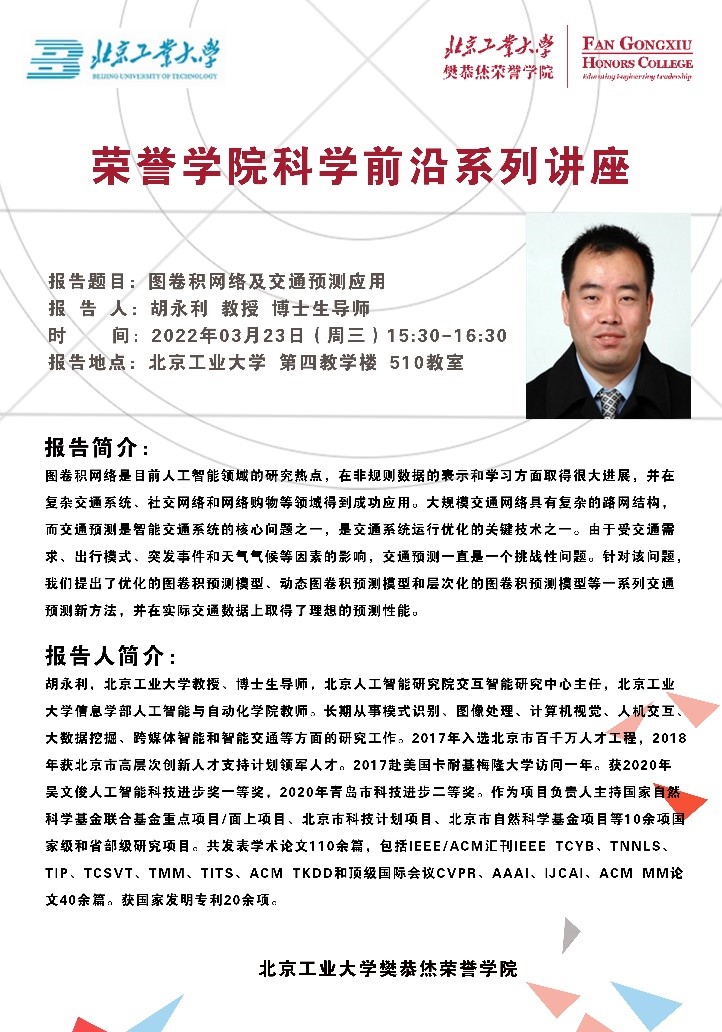 胡永利教授,开展了主题为图卷积网络及交通预测应用的报告。