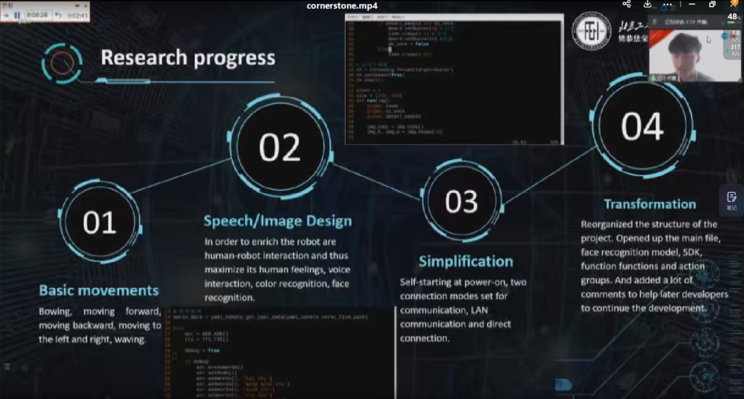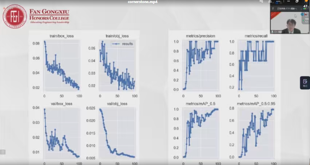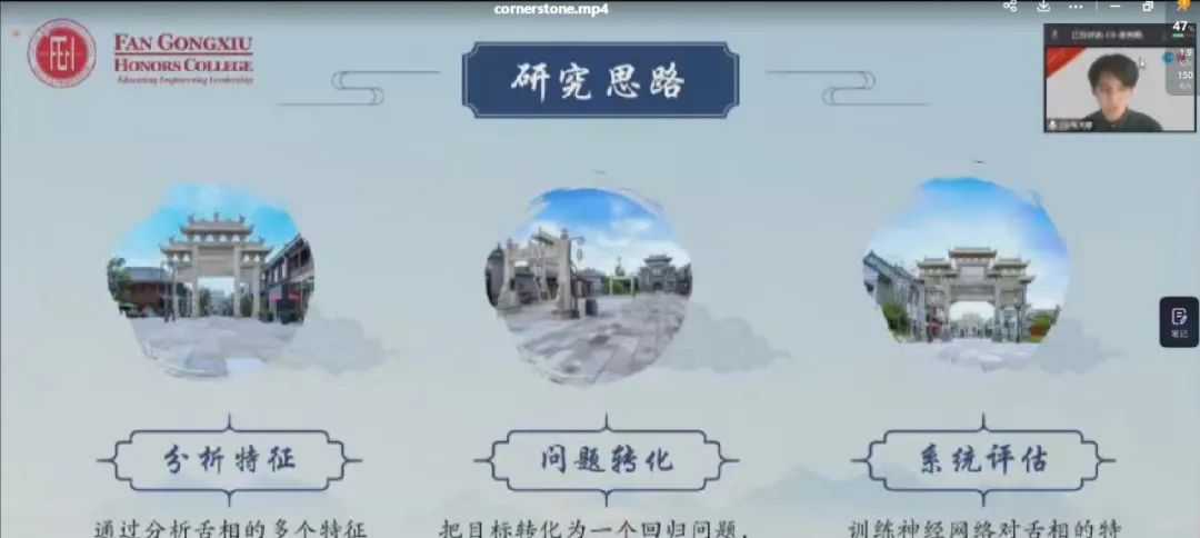 特色的Stone计划继续发光发热。随后项目汇报按照2021级Cornerstone(12组)和2020级Keystone(8组)顺序依次进行,汇报包括成果展示和评委提问两个环节。汇报内容覆盖电子科学,信息安全,人工智能、材料制造等多个学科,各专家老师对每个组进行了点评和指导,各组汇报人也与专家进行了充分的思维碰撞和交流。