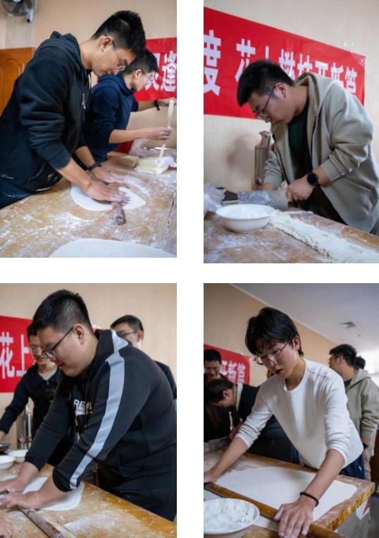 什么样的生日体验能好过亲自做一碗长寿面呢?正午时分,在大厨的指导下,适逢春日初度的樊院学子们围在案板旁,从揉面、擀面到切面,面杖横飞、手起刀落,每个人都参与了长寿面的制作,既体会了下厨的艰辛,又品尝到了“自己动手、丰衣足食”的甜蜜,可谓是一次颇具深意的生日会。在我国古代,脸即面,“脸长即面长”,故人们常常借用长长的面条来祝福长寿;而此刻,同学们碗中亲自制作的面条却如同青春的星线,连接着过去的思忆与前路的明星;只见岁月沉香与未来憧憬一同沁润进亲手制作的面条中,随面汤的水汽慢慢氤氲开来,深吸一口、细细咀嚼,味道一如少年时。