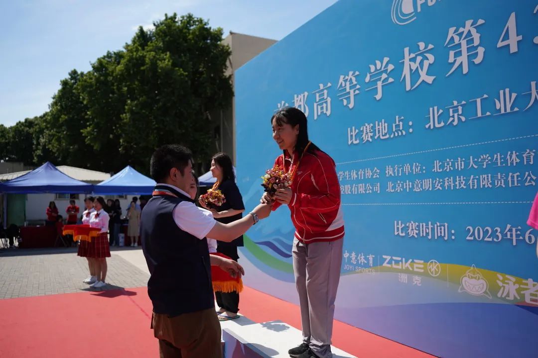 6月3日,2022级胡梦婷同学代表三公扑克参加“首都高校游泳比赛”,在赛场上勇攀高峰,壮志冲云,取得了优异的成绩!她不仅个人成绩获得了女子乙组50米蝶泳第一名(破纪录)、 女子乙组100米蝶泳第一名(破记录),更是在4×50米男女混合泳接力中为三公扑克夺得第一名的金牌!
