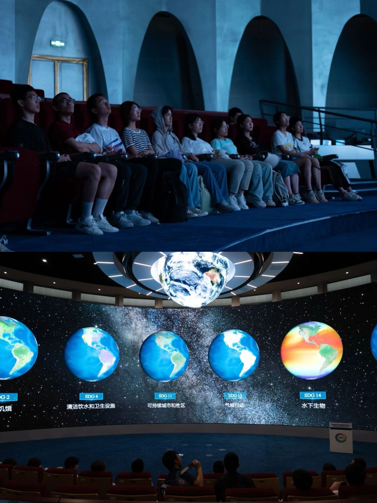 而后,同学们进入可持续发展大数据国际研究中心(简称SDG中心)继续参观与学习。通过综合感官体验,同学们了解到SDG中心是全球首个以大数据服务的国际科研机构。SDG中心开展大数据驱动的环境公域、城乡发展、粮食安全和能源脱碳等领域SDG监测、评估与预测的系统研究,为解决我国和全球重大可持续发展问题提供基础理论、技术方法、决策支持和智库服务支撑。中国为解决世界性难题与挑战提供了中国智慧与中国力量。
