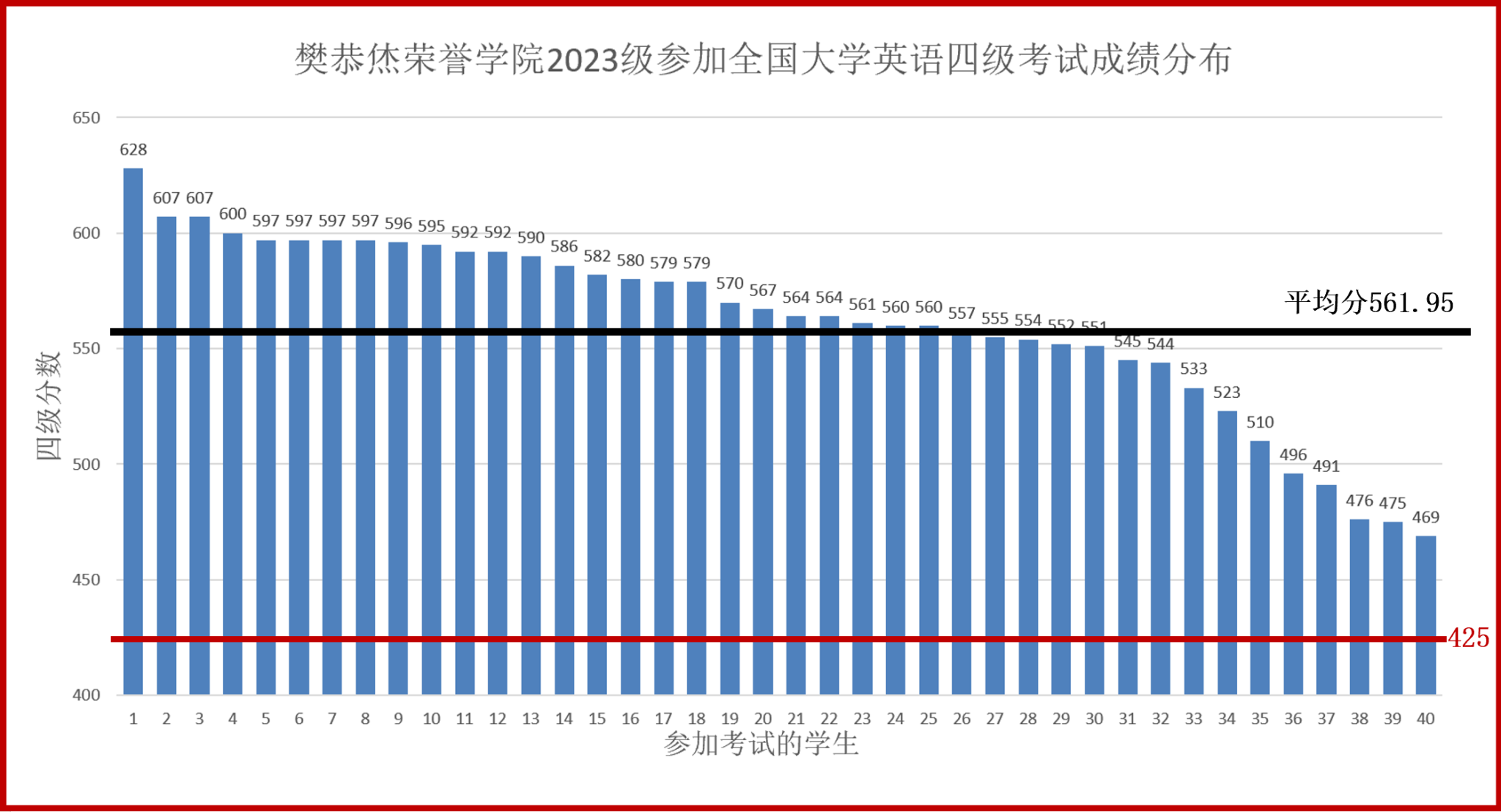 2023级和2024级学子们再次交出了一份令人瞩目的成绩单。2023级学生迄今为止,四级通过率达到了100%,平均分561.95分;六级通过率达到了70%,平均分541.53分,其中范文翰同学六级成绩高达661分。2024级学生参加四级考试的34人,通过率高达97%,平均分560.00分。这些优异的成绩背后,是樊院学子的勤奋努力,更是三公扑克