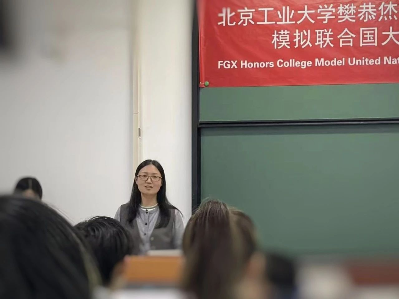 副院长袁莉敏、辅导员张萌老师及特邀嘉宾 Harith 出席开幕式。同时,前期从高年级学长学姐中选出的模拟联合国活动主席团成员李定坤、黄湛博、赵则璇、王薇然、范文瀚五位同学,全程参与了活动的指导。