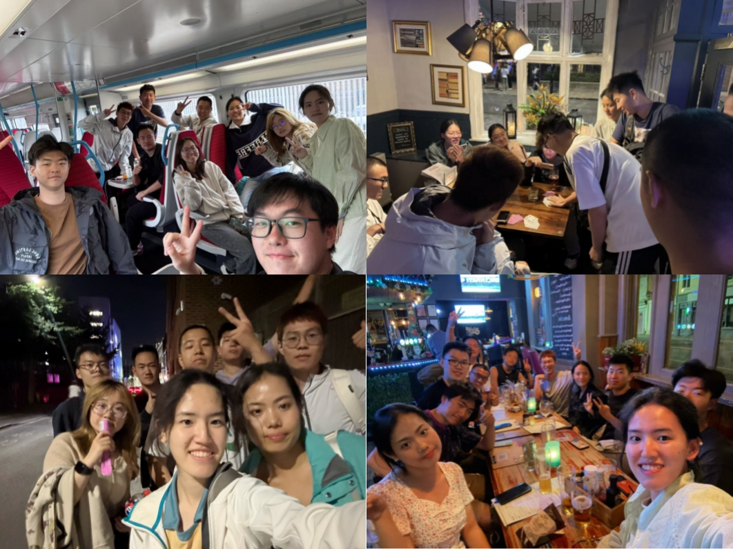 还有更多的文化体验活动,在Pub Night中,同学们与来自世界各地的友人轻松交谈,在温暖惬意的氛围中畅聊文化与生活,感受英伦社交的独特魅力;音乐会现场,古典与现代的交融令人沉醉,大家沉浸在旋律之中,体会艺术跨越语言的力量;而“边走边讲”活动中,大家穿梭于古老街巷与现代建筑之间,聆听教授生动讲述牛津故事,在脚步间感知历史的层叠与时代的变迁。这些丰富多元的文化体验,不仅拓宽了大家的国际视野,更在互动与交流中深化了对跨文化理解的认识。同学们真切地感受到英国高校特有的学术生活文化——它不仅仅关乎严谨的学业,更在于与师长、同窗之间的思想碰撞、情感共鸣与共同成长,在一餐一叙之间,体会分享与互动的获得感。