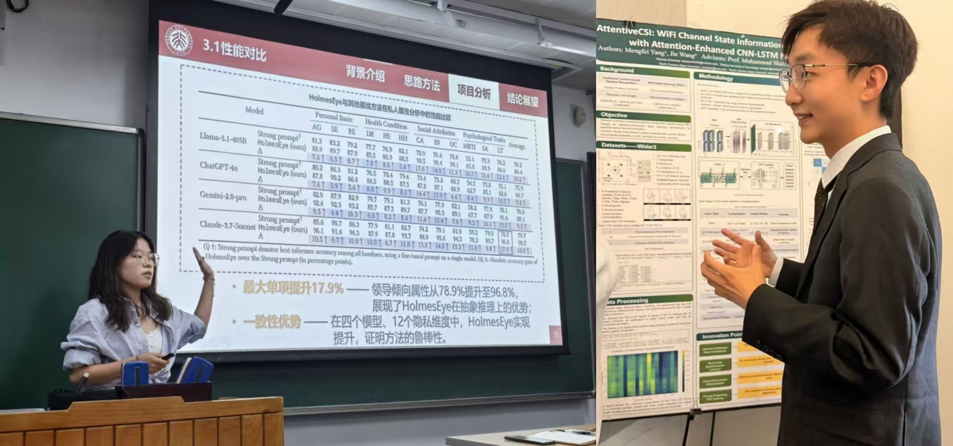 ,深入学习了脑机接口、大模型等前沿课程;另有5名同学分别赴德国亚琛工业大学、美国北卡罗来纳州立大学等知名高校参与科研项目。在导师的悉心指导下,同学们完成了多场学术汇报,积极参与论文撰写与成果展示,并在海报研讨会上进行交流与分享,在学术表达和国际视野方面均获得显著提升。